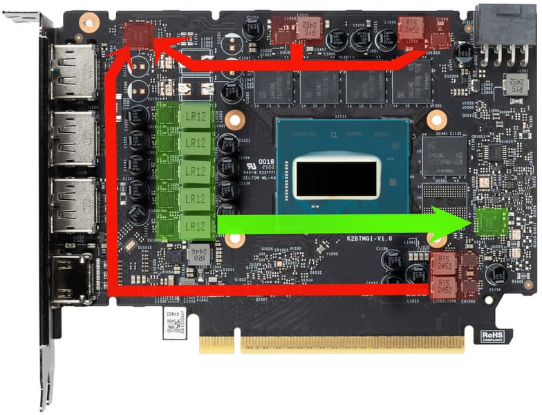 | Блоки трассировки лучей | 18 ядер RTU для расчета пересечения лучей с треугольниками и ограничивающими объемами BVH |