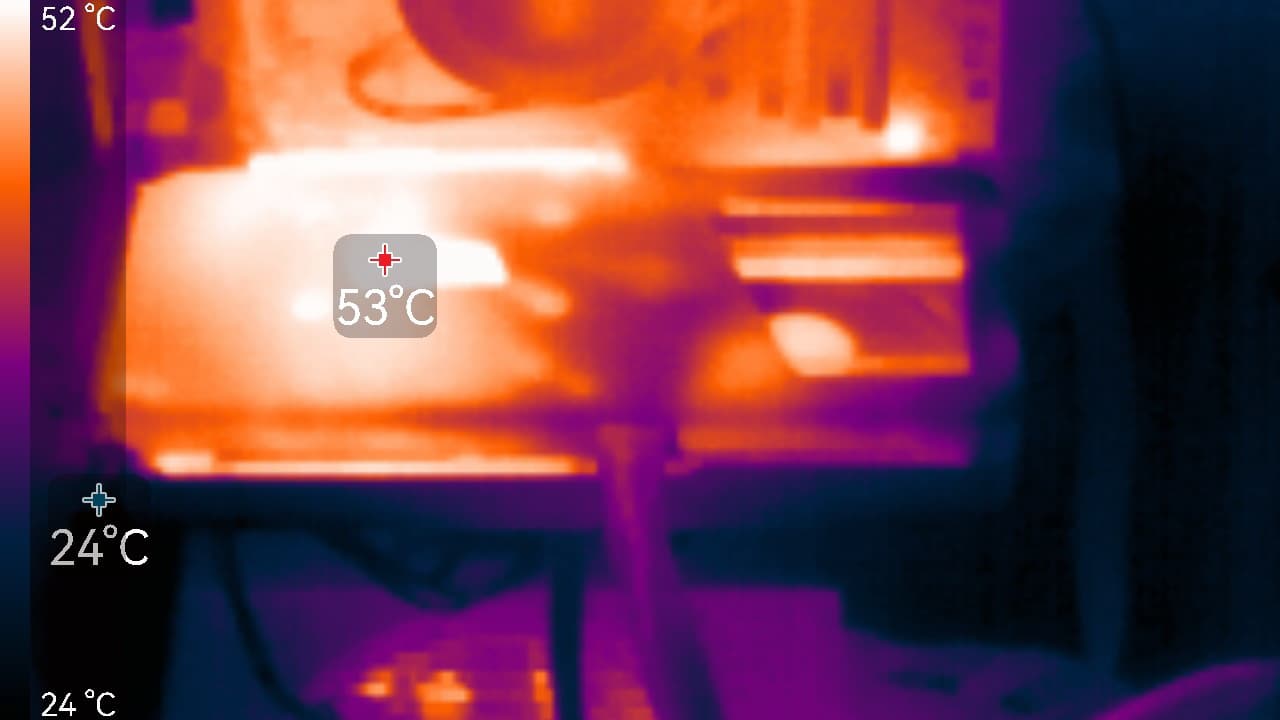 Младшая карта Battlemage отличается максимальным уровнем потребления энергии в 150 Вт, получая питание по слоту PCIe и одному 8-контактному разъему дополнительного питания, которые вместе способны дать до 225 Вт, и этого более чем достаточно. Изготовление новых GPU с использованием современного 5-нанометрового техпроцесса вместе с архитектурными улучшениями позволило значительно снизить энергопотребление, поэтому урезанная модель и в реальности потребляет в играх около 150-155 Вт, что минимум на 30 Вт меньше потребления Arc B580. С учетом разницы в производительности, B570 можно даже назвать чуть более энергоэффективной видеокартой, но до современных решений Nvidia ей всё равно далеко: та же GeForce RTX 4060 потребляет менее 130 Вт в тех же условиях.