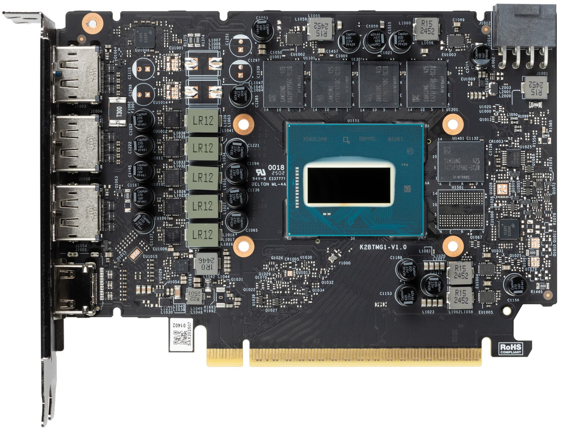 | Тензорные блоки | 144 матричных ядра XMX для матричных вычислений INT2/INT4/INT8/FP16/BF16 |