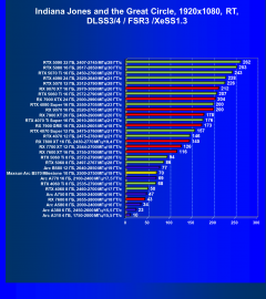 Если посмотреть на энергоэффективность, то Arc B570 по этому показателю лишь замыкает первую двадцатку (как в классических играх, так и в играх с RT и технологиями масштабирования).