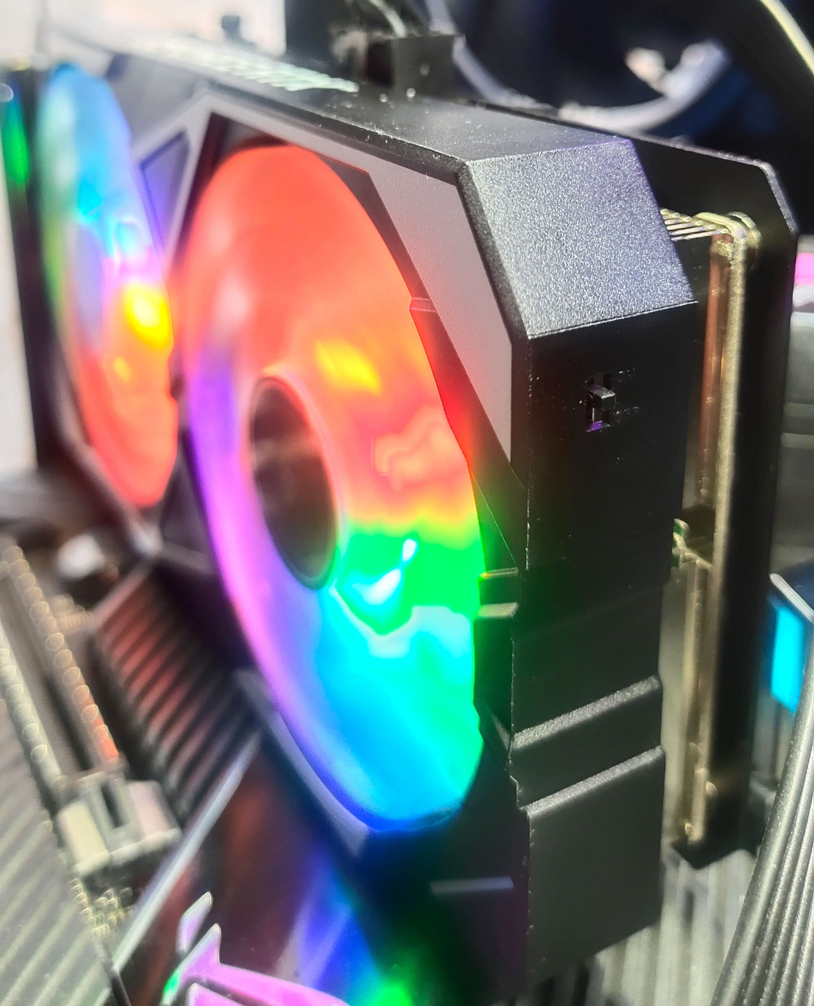 На фотографии ниже вентиляторы у работающей карты неподвижны, когда отсутствуют значительная нагрузка и нагрев.