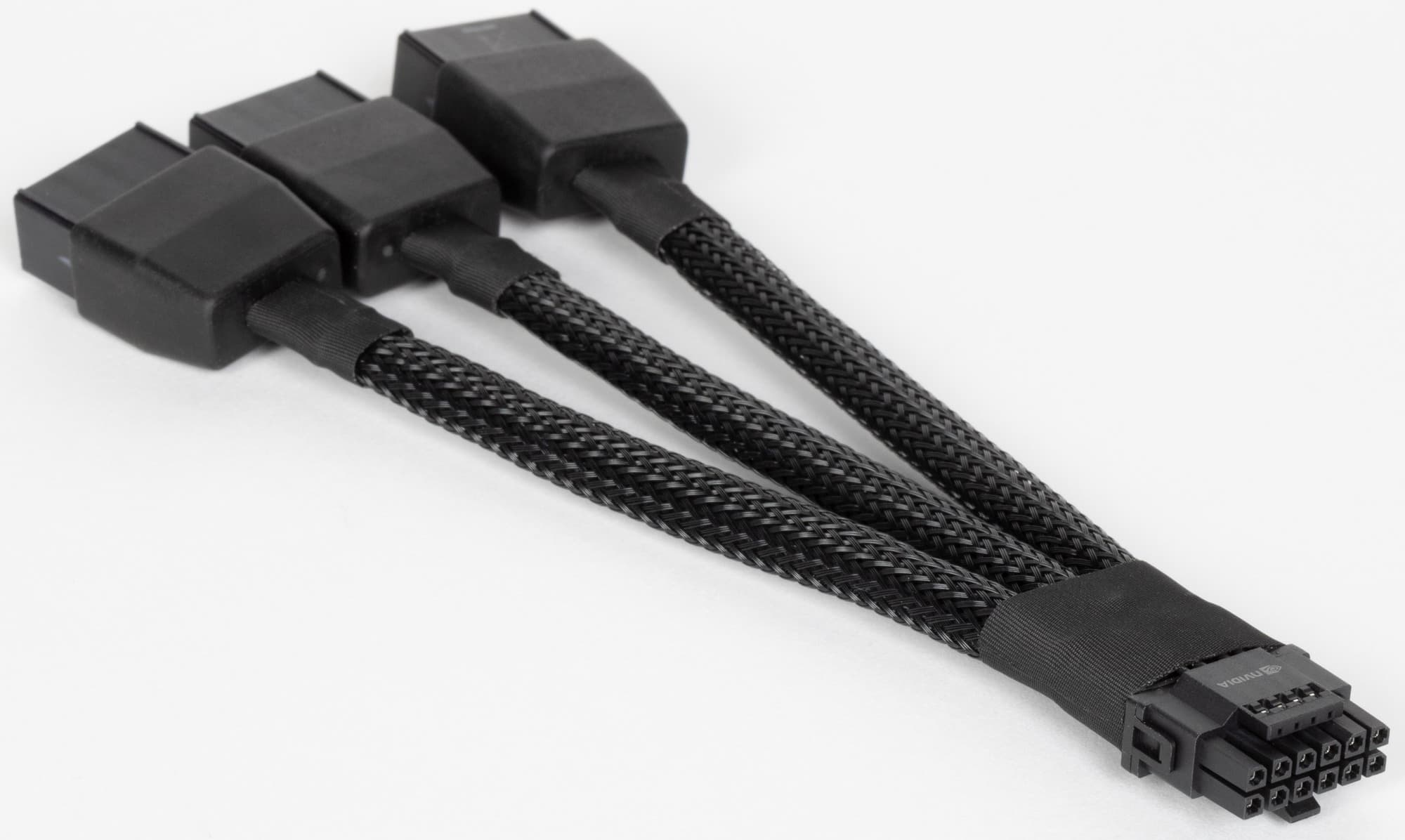 Данный адаптер крайне не рекомендуется сгибать в месте той самой оплетки. В целом мы еще раз рекомендуем приобретать полноценные БП ATX 3.0 с разъемом 12VHPWR и кабелем с 16 контактами для видеокарт новых поколений.