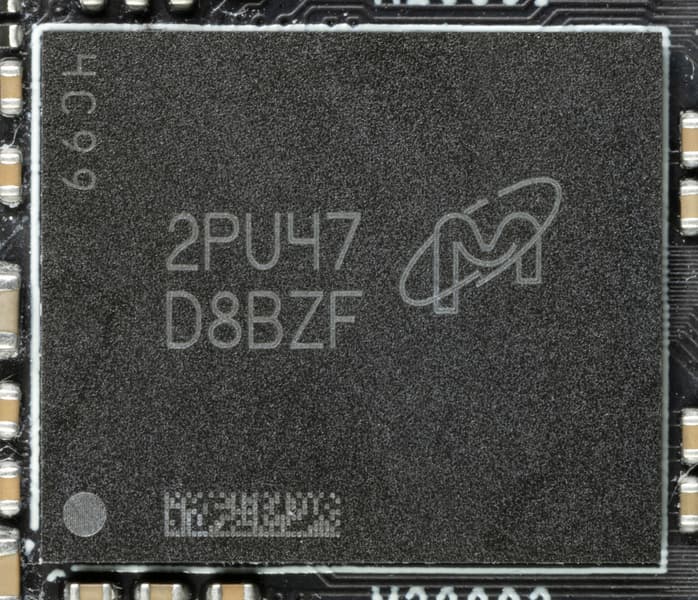 Также на тыльной стороне карты имеется контроллер uS5650Q (uPI Semi), который отвечает за мониторинг карты (отслеживание напряжений и температуры).