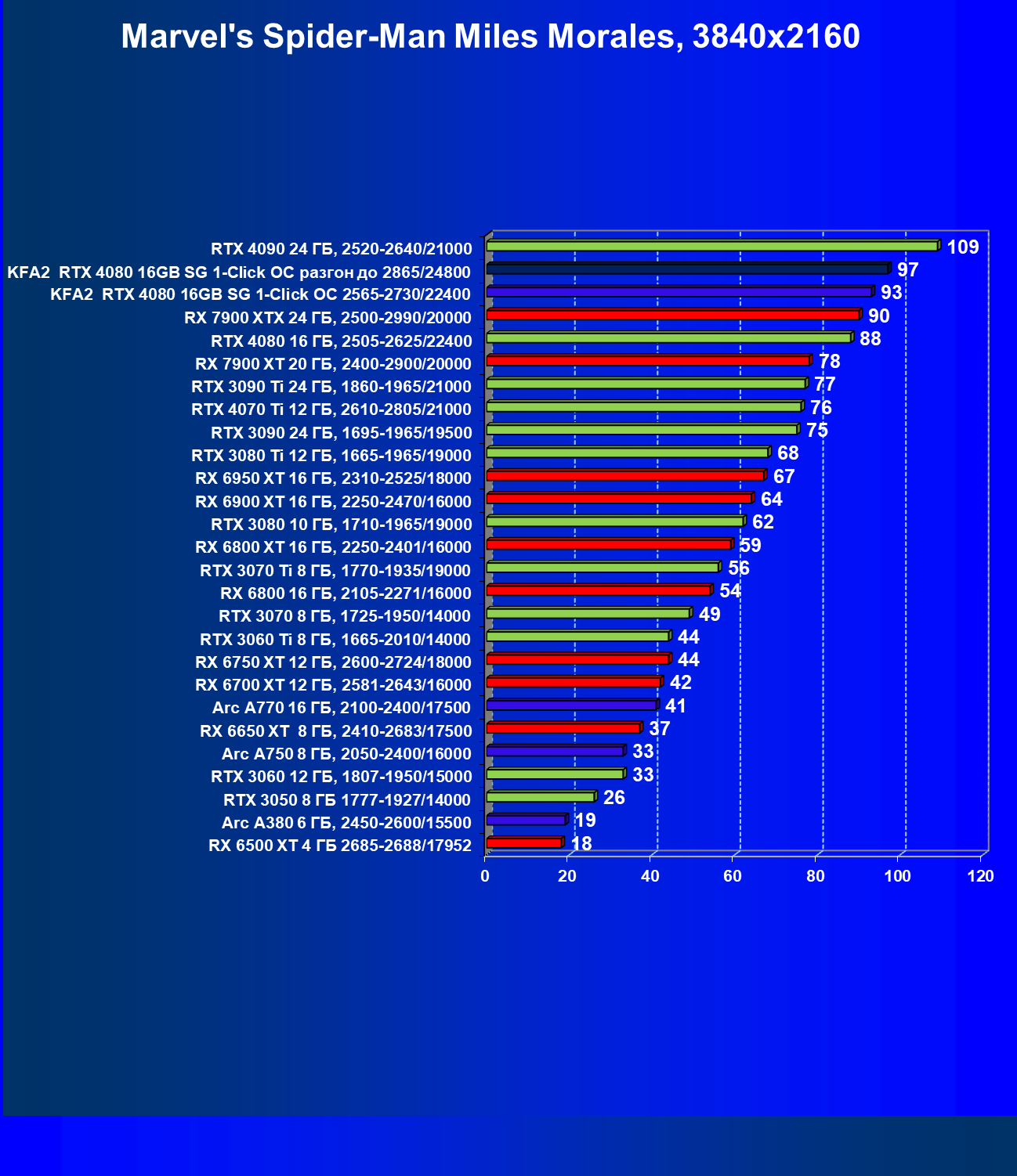 | 09 | KFA2 RTX 4080 16GB SG 1-Click OC, разгон до 2865/24800 | 94 | 895 | 95 000 |