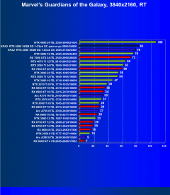 Почти все вышесказанное справедливо и здесь, за исключением того, что RX 7900 XTX уже явно отстал, и RTX 4080 смотрится явно предпочтительнее.
