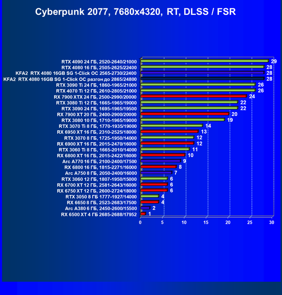 | 16 | RX 7900 XTX 24 ГБ, 2500—2990/20000 | 91 | 889 | 98 000 |