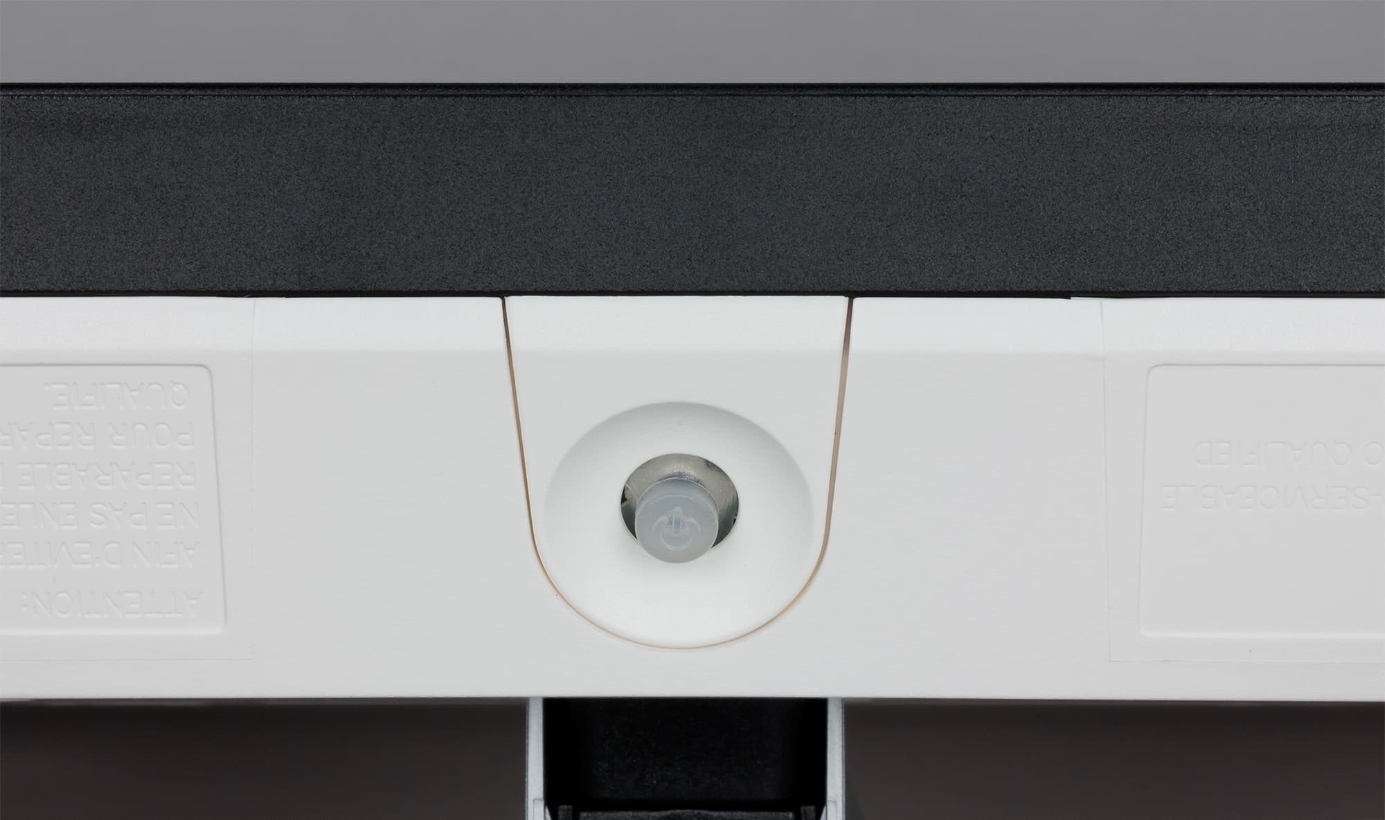 На нижнем торце блока экрана есть две разнесенные вентиляционные решетки, за которыми можно рассмотреть по громкоговорителю с вытянутым диффузором. Громкоговорители установлены в индивидуальные боксы. Еще одна вентиляционная решетка — на задней панели выше. Разъем питания и все интерфейсные разъемы размещены в неглубокой нише на задней панели и ориентированы назад. Так же на задней панели можно обнаружить разъем для кенсингтонского замка.