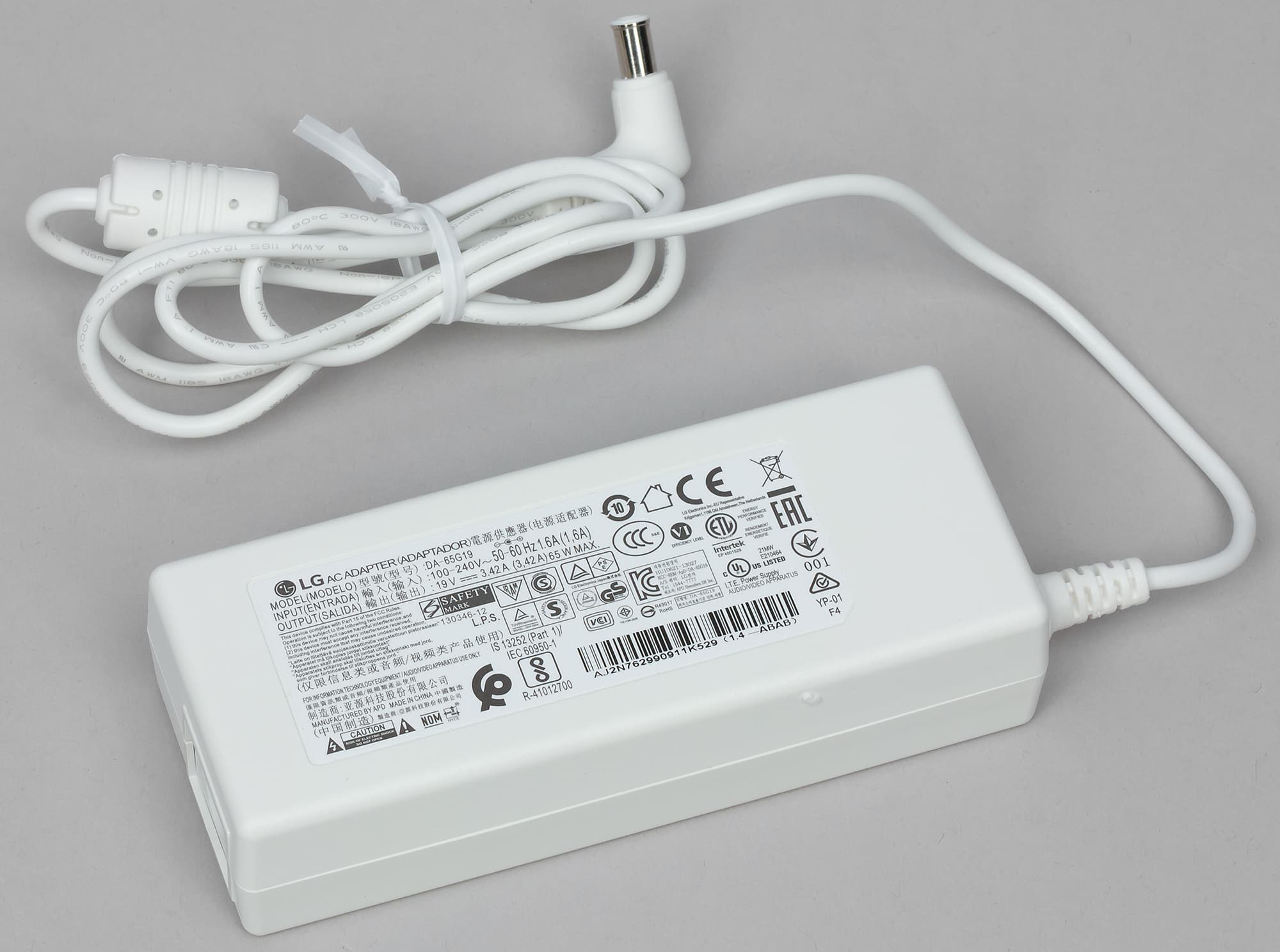 Комплектные HDMI-кабель, кабель питания и блок питания — белого цвета, что сочетается с цветом задней панели корпуса монитора.