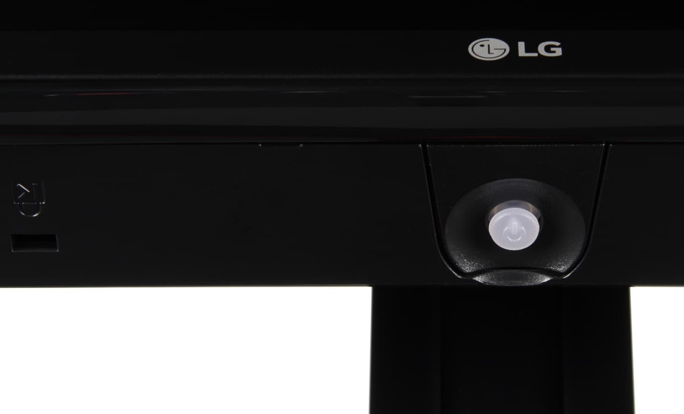 Фронтальная поверхность экрана выглядит как монолитная черная полуматовая (зеркальность отчасти присутствует) поверхность, ограниченная снизу относительно узкой стальной рамкой с матовым черным покрытием, а по периметру — узкой окантовкой из черного пластика без покрытия. Выведя изображение на экран, можно увидеть, что на самом деле между окантовкой и собственно областью отображения есть узкие поля — 10 мм по бокам и 9 мм сверху, а снизу до рамки — 5 мм. Органом управления и индикации режимов служит небольшой пятипозиционный (отклонение по четырем направлениям и нажатие) джойстик из матового полупрозрачного пластика, расположенный по центру на нижней грани блока монитора.
