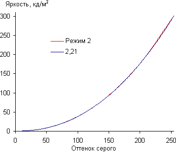Аппроксимация полученной гамма-кривой дала показатель 2,21, что очень близко к стандартному значению 2,2, при этом реальная гамма-кривая почти не отклоняется от аппроксимирующей степенной функции: