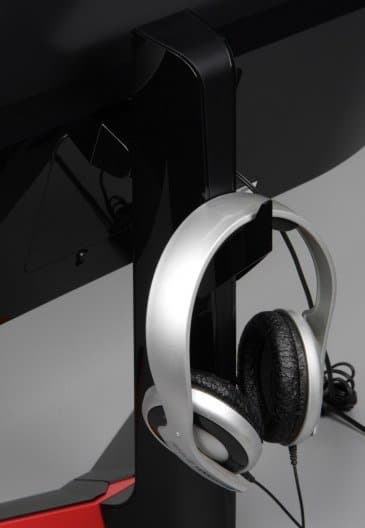 - Удобная регулируемая подставка и скоба-крюк для фиксации кабелей и размещения наушников