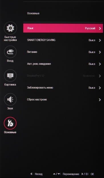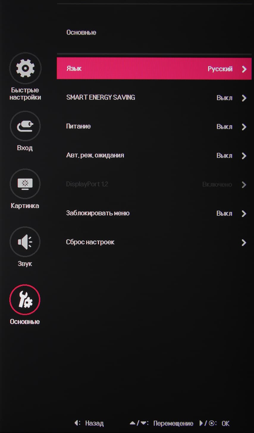 При этом сами надписи в меню мелкие и широко разнесены по вертикали. Благодаря логике переходов и джойстику, с которого не нужно снимать палец, навигация по меню очень удобная и быстрая. Чтобы предотвратить нежелательное изменение настроек, можно включить частичную блокировку пунктов меню. Есть русская версия экранного меню. Кириллический шрифт меню ровный, надписи читаемые. Качество перевода на русский язык приемлемое.