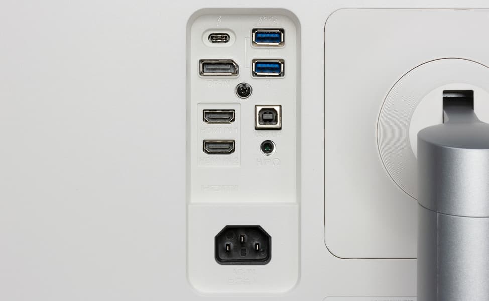 Монитор оснащен четырьмя цифровыми входами: DisplayPort в полноразмерном варианте, двумя HDMI и Thunderbolt 3 в виде разъема USB типа C.