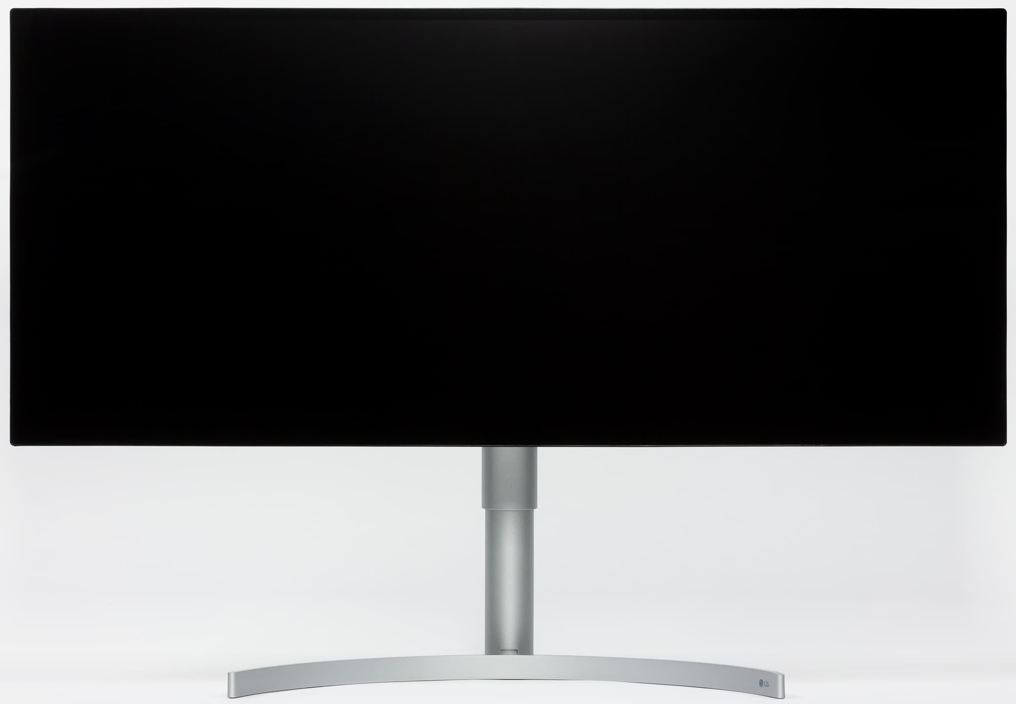 Фронтальная поверхность экрана выглядит как монолитная черная полуматовая (зеркальность отчасти присутствует) плоскость, ограниченная по периметру узкой окантовкой.