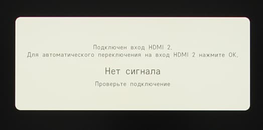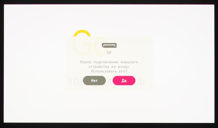 Функции автоматического поиска сигнала на входах нет, но во время работы от одного источника при обнаружении сигнала на другом входе монитор выводит сообщение с предложением переключиться на появившийся источник, при отсутствии сигнала на текущем и наличии на другом, монитор также предлагает на него переключится.