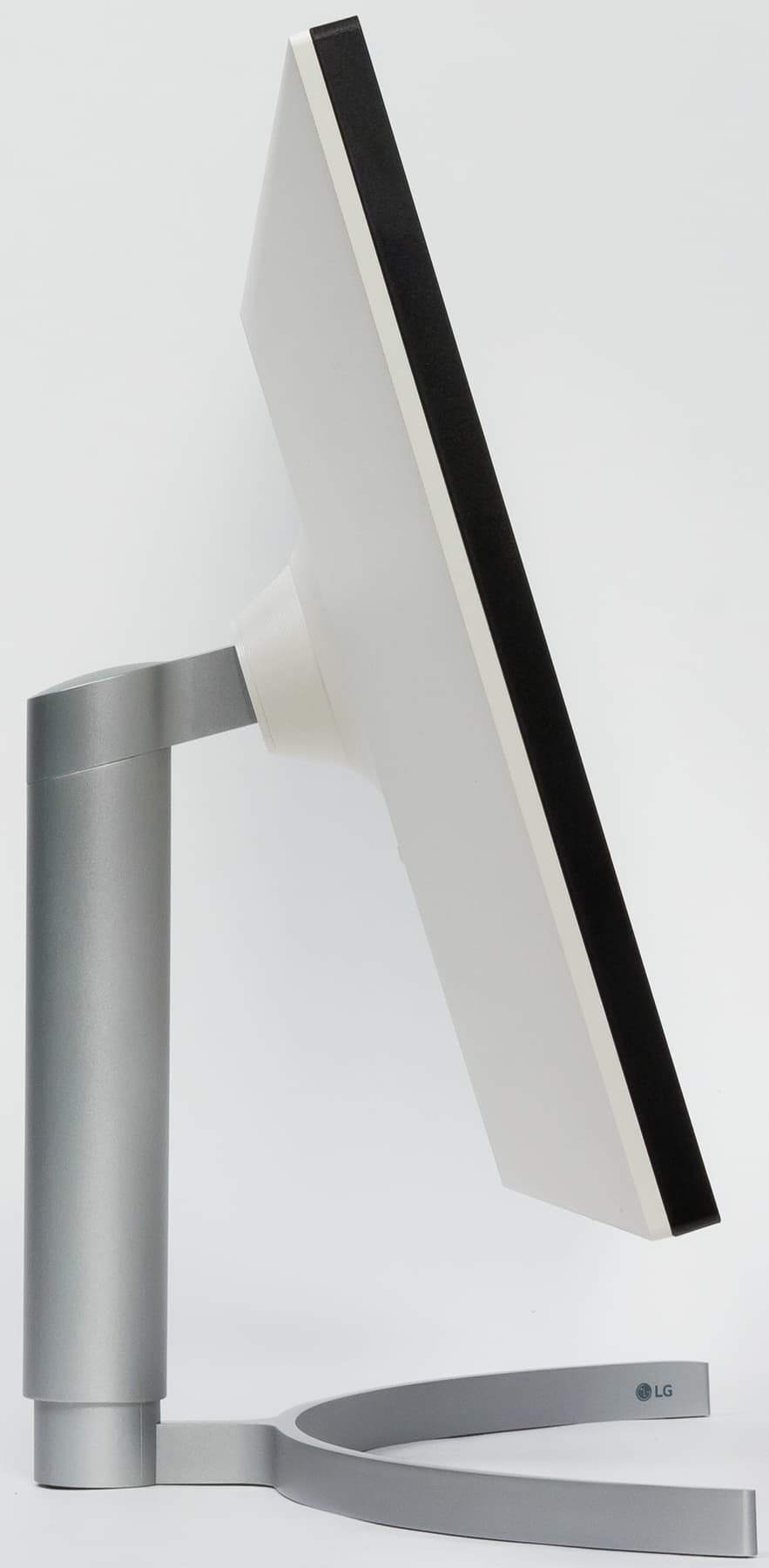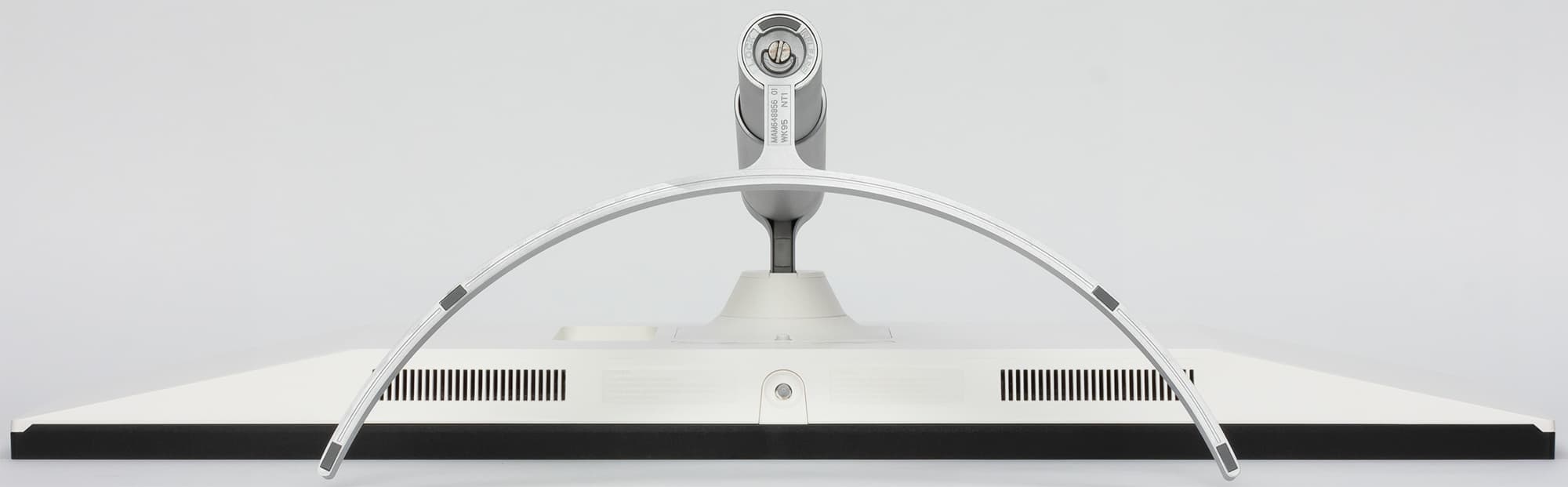Подставка состоит из двух частей — из основания и телескопической стойки. Чтобы выдержать вес монитора, основание и ряд ответственных деталей изготовлены из алюминиевого сплава и толстой штампованной стали. Конструкция подставки достаточно жесткая. Стоит монитор устойчиво. Резиновые накладки снизу на основании подставки защищают поверхность стола от царапин и предотвращают скольжение монитора на гладких поверхностях. Изогнутая дуга-основание занимает не много места на рабочем столе.