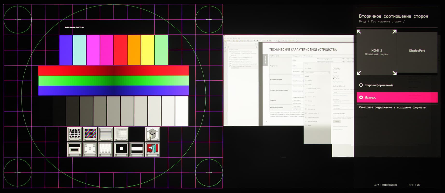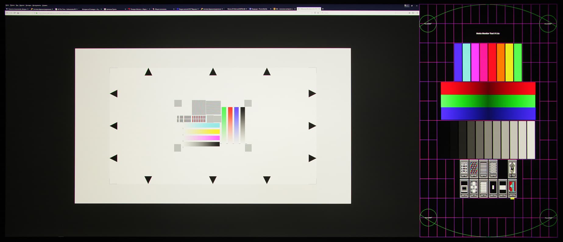 - Измерение равномерности черного и белого полей, яркости и энергопотребления