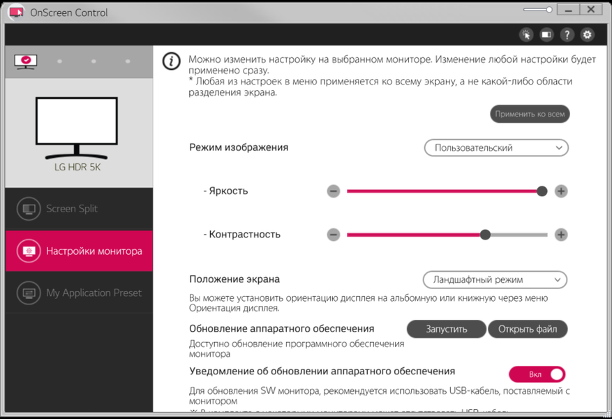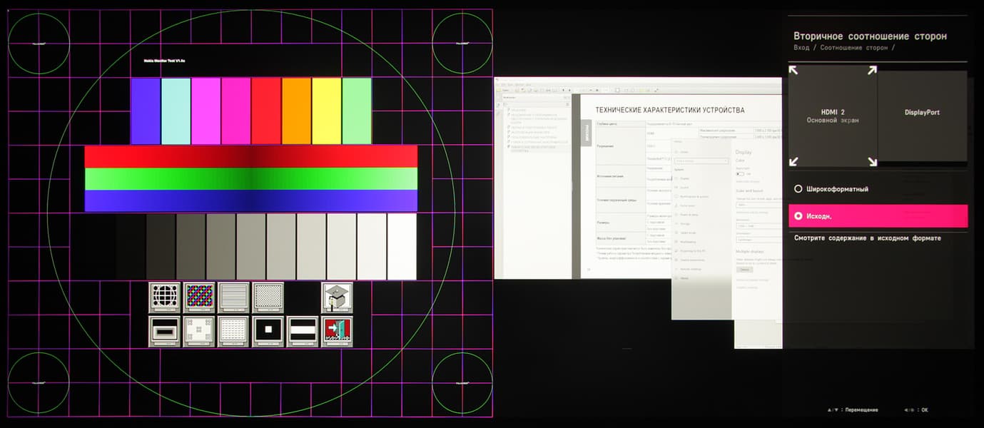 В итоге в режиме PBP можно получить два изображения 2560×2160 или одно 3840×2160 плюс еще одно 1280×2160 с выводом точка в точку и с заполнением всей области отображения от двух независимых источников. При смене режимов PBP монитор обновляет список допустимых разрешений.