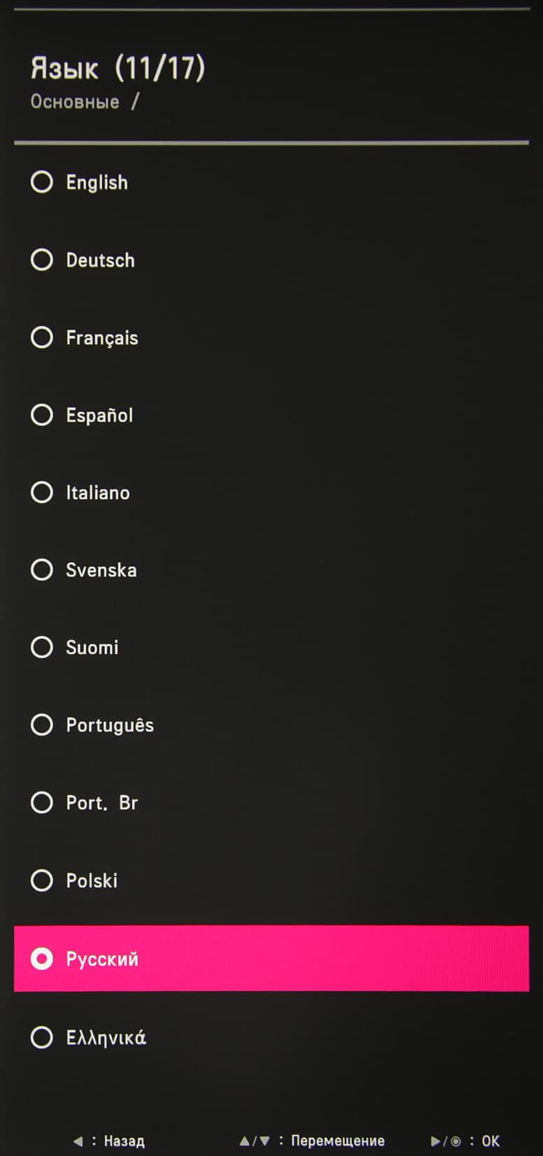 При этом сами надписи в меню мелкие и широко разнесены по вертикали. Благодаря логике переходов и джойстику, с которого не нужно снимать палец, навигация по меню очень удобная и быстрая. Чтобы предотвратить нежелательное изменение настроек, можно включить частичную блокировку меню. Есть русская версия экранного меню. Кириллический шрифт меню ровный, надписи читаемые. Качество перевода на русский язык приемлемое.
