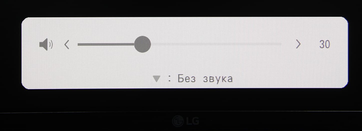 Индикатор питания отсутствует. Когда на экране нет меню, то отклонение джойстика влево или вправо выводит меню регулировки звука (уровень громкости и отключение/включение):