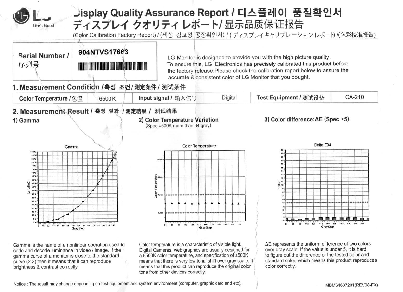 К монитору (к каждому конкретному экземпляру) прилагается отчет о качестве цветового баланса:
