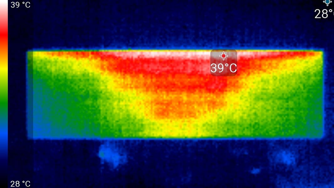 Спереди в верхней части экрана была зафиксирована температура в 39 °C — видимо, там находится светодиодная линейка подсветки экрана.