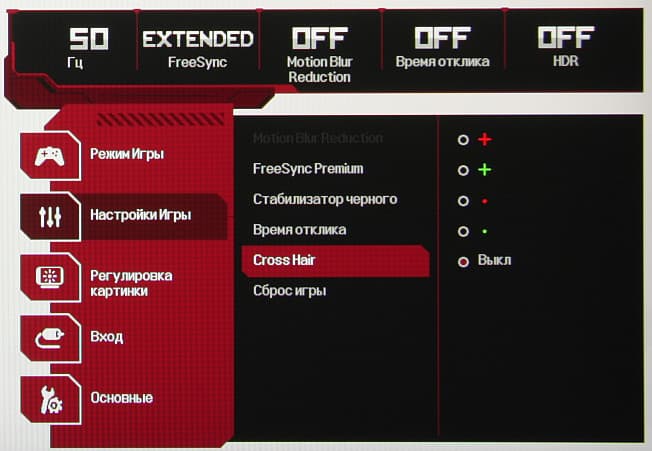 Из дополнительных возможностей присутствует одна «геймерская» функция: вывод в центре экрана прицела выбранной формы.