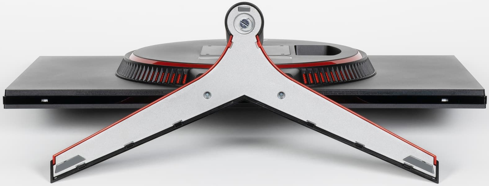 Чтобы выдержать вес монитора, основание и ряд ответственных деталей подставки изготовлены из алюминиевого сплава и толстой штампованной стали. Конструкция подставки достаточно жесткая. Стоит монитор устойчиво. Резиновые накладки снизу на основании подставки защищают поверхность стола от царапин и предотвращают скольжение монитора на гладких поверхностях.