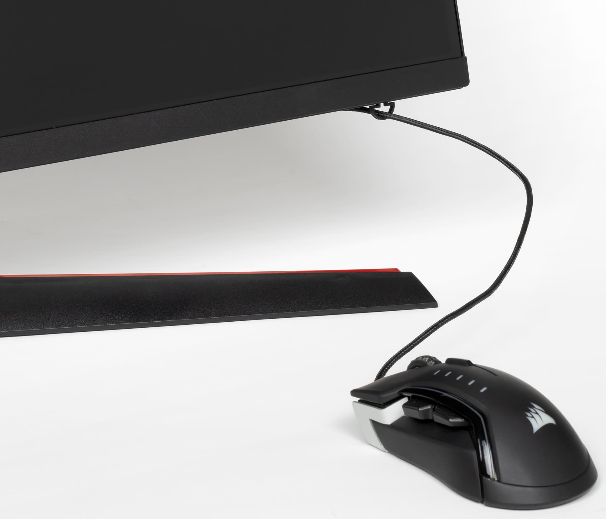 Подключать кабели к этим разъемам удобно. Игроки оценят скобочку, которую можно закрепить справа или слева на нижнем торце и использовать для поддержки кабеля мыши.