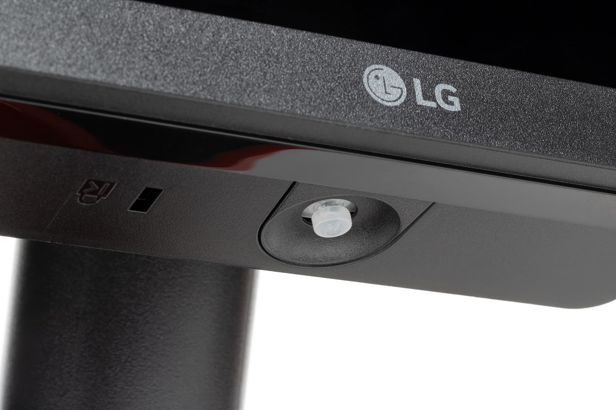 По центру нижней планки серебристой краской нанесен логотип производителя. Органом управления и индикации режимов служит небольшой пятипозиционный (отклонение по четырем направлениям и нажатие) джойстик из матового полупрозрачного пластика, расположенный по центру на нижнем торце блока монитора. Рядом с ним находится разъем для кенсингтонского замка.
