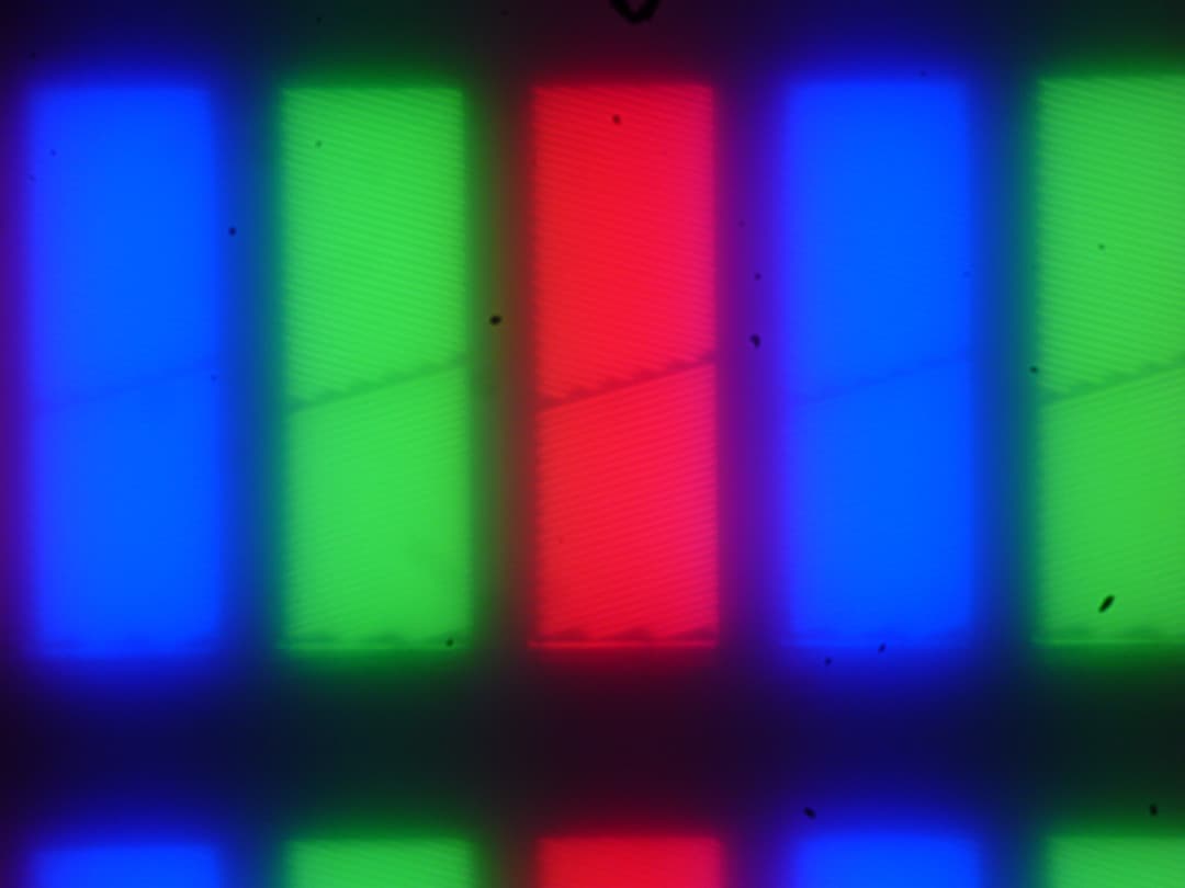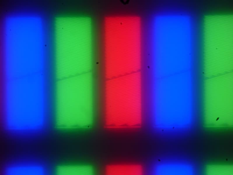Изображение структуры пикселей из-за матовой поверхности размыто, но характерную для IPS структуру распознать можно: