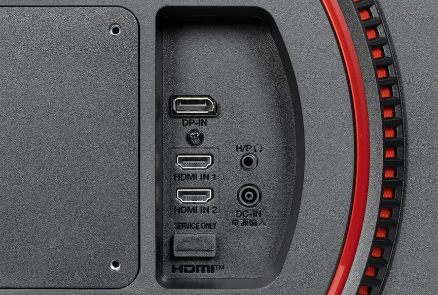 Монитор оснащен тремя цифровыми видеовходами: одним DisplayPort и двумя HDMI, все в полноразмерном варианте. Входы выбираются в меню (в быстром или полном), кроме того, монитор сначала предлагает переключиться на активный вход, если на текущем сигнал пропал или его не было при включении монитора, а затем переключается автоматически (такое поведение можно отключить). Входы HDMI и DisplayPort способны принимать цифровые аудиосигналы (только PCM стерео), которые выводятся после преобразования в аналоговый вид через гнездо миниджек 3,5 мм — выход на наушники. Мощности выхода на наушники хватило, чтобы в 32-омных наушниках с чувствительностью 92 дБ был большой запас по громкости. Качество звука в наушниках хорошее — звук чистый, воспроизводится широкий диапазон частот, в паузах шума не слышно.