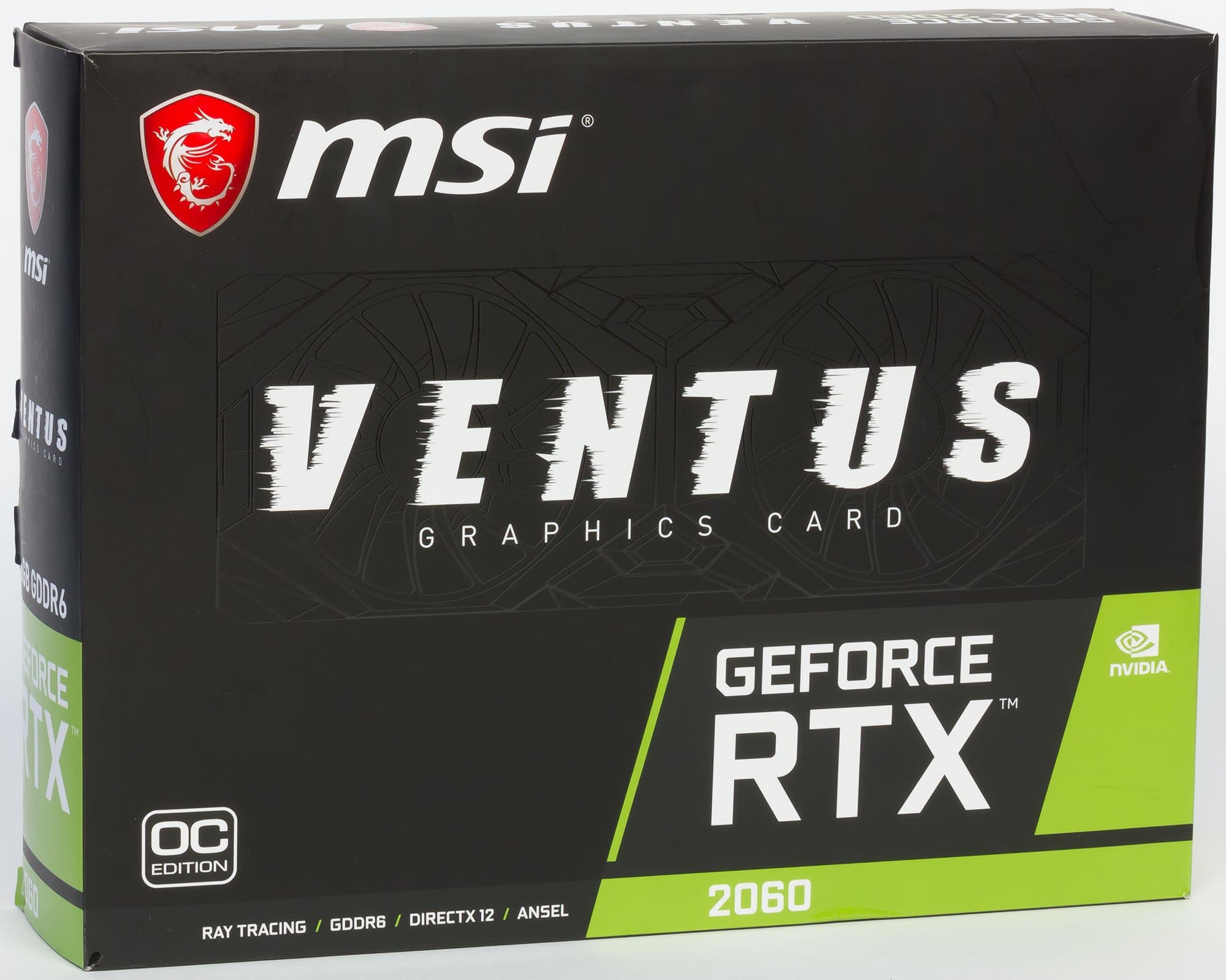 MSI GeForce RTX 2060 Ventus OC 6G (6 ГБ) является отличным вариантом GeForce RTX 2060 для тех, кому не требуется серьезный ручной разгон, подсветка и прочие излишества. Это один из лучших ускорителей в ценовом диапазоне 22—26 тысяч рублей. Главным плюсом MSI GeForce RTX 2060 Ventus OC 6G является система охлаждения, обеспечивающая низкую температуру ядра и карты в целом, при этом очень тихая и относительно компактная.