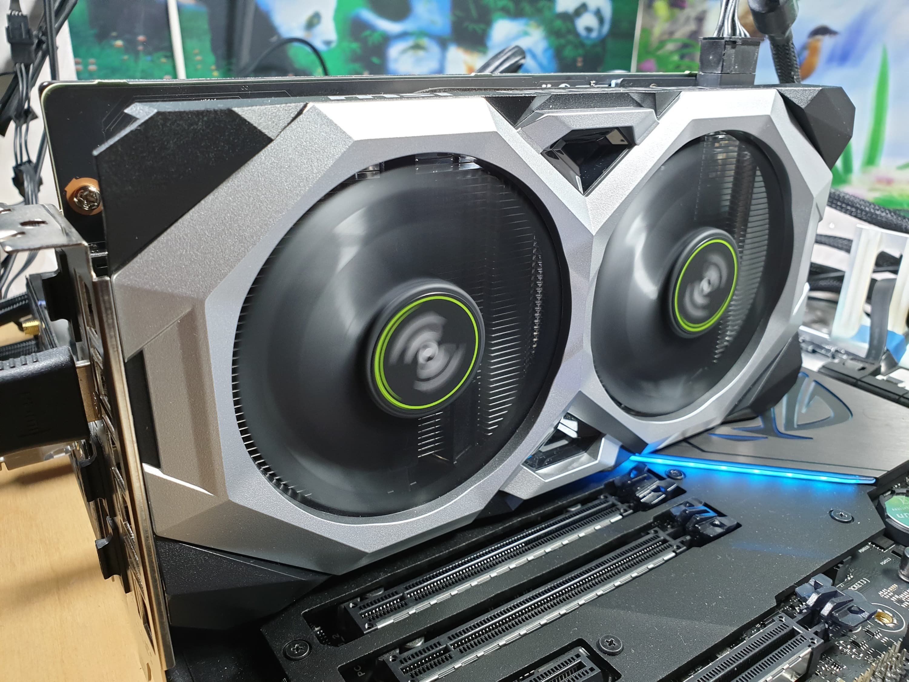 Карта лишена всяческой подсветки, а вентиляторы работают всегда.
