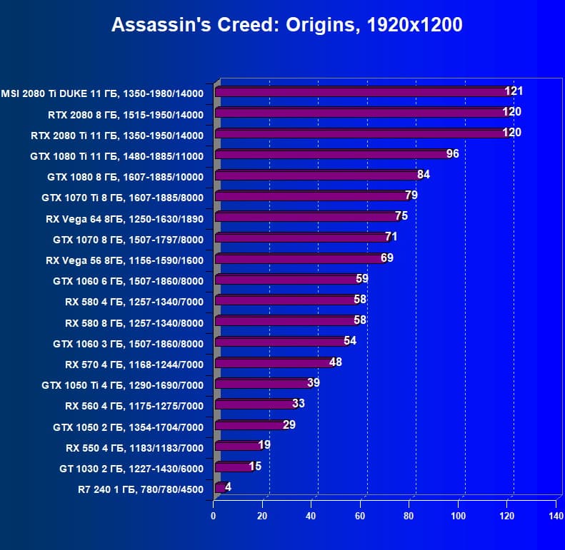 | 18 | RTX 2080 Ti 11 ГБ, 1350—1950/14000 | 571 | 5480 | 96 000 |