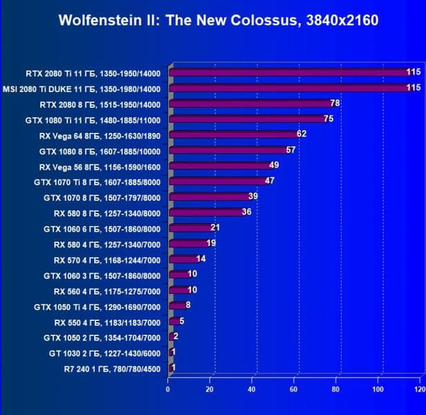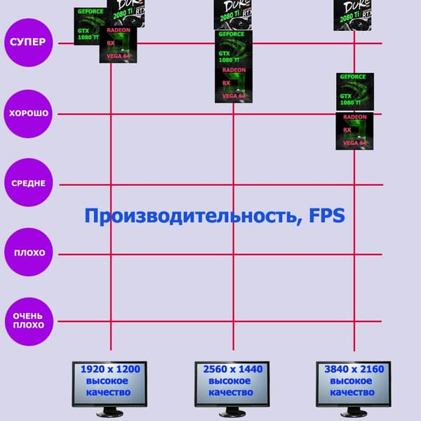 Эта карта (как, собственно, и все ускорители на базе RTX 2080 Ti) прекрасно подойдет, если вы хотите играть при максимальном качестве графики во всех игры в разрешении до 4K включительно. Подчеркнем: GeForce RTX 2080 Ti предназначен именно для очень высоких разрешений уровня 4К, в которых он все еще обеспечивает бескомпромиссное качество графики, тогда как конкуренты (GTX 1080 Ti и, особенно, RX Vega 64) заметно сдают, .