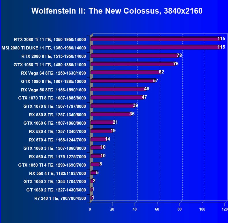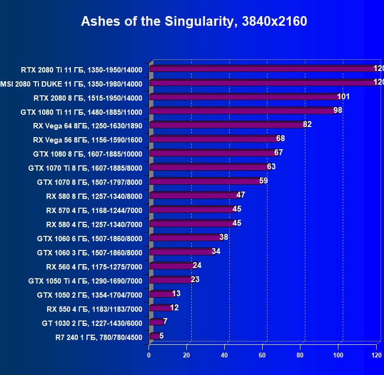 | 16 | MSI RTX 2080 Ti Duke 11 ГБ, 1350—1980/14000 | 591 | 5500 | 93 000 |