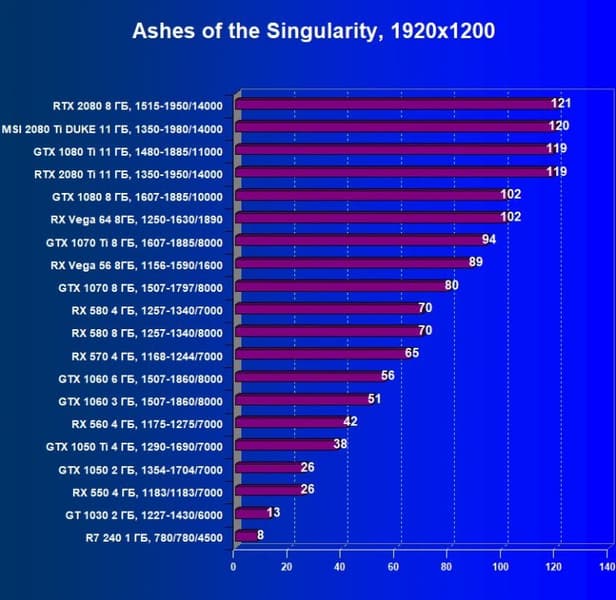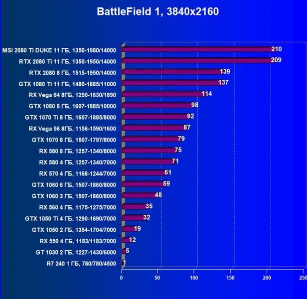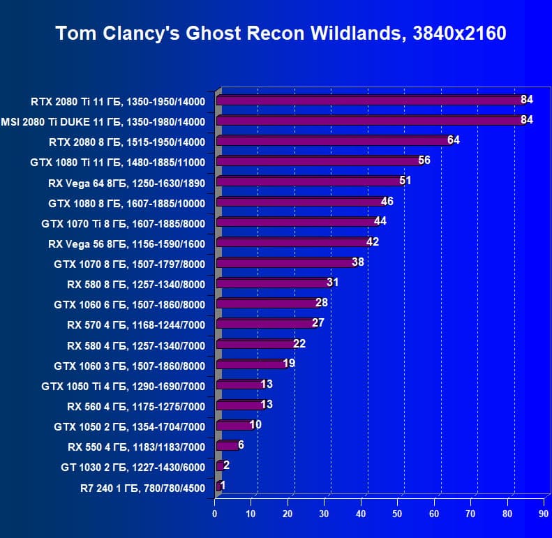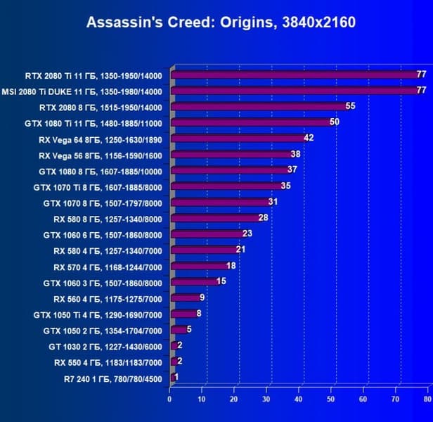 | 11 | GTX 1080 Ti 11 ГБ, 1480—1885/11000 | 838 | 4020 | 48 000 |