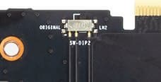 На верхнем торце карты есть микропереключатель, выбирающий используемую микросхему BIOS. Если переключить его в режим LN2, то задействуется версия BIOS, дающая больший лимит энергопотребления с иной схемой управления вентиляторами, однако по умолчанию Boost-частота работы GPU в нем ниже, чем у Nvidia Founders Edition. Эта версия явно рассчитана на оверклокеров, которым безразличны номинально установленные частоты.