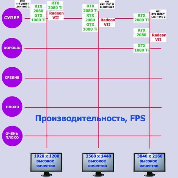 Ускорители GeForce RTX 2080 Ti отлично подходят для разрешения 4К без каких-либо жертв в качестве картинки, то есть на них прекрасно можно играть в этом разрешении при максимальных настройках качества. Разумеется, можно играть и в более низких разрешениях, однако покупать этот ускоритель премиального класса имеет смысл только для того, чтобы играть на большом 4К-мониторе (или телевизоре).