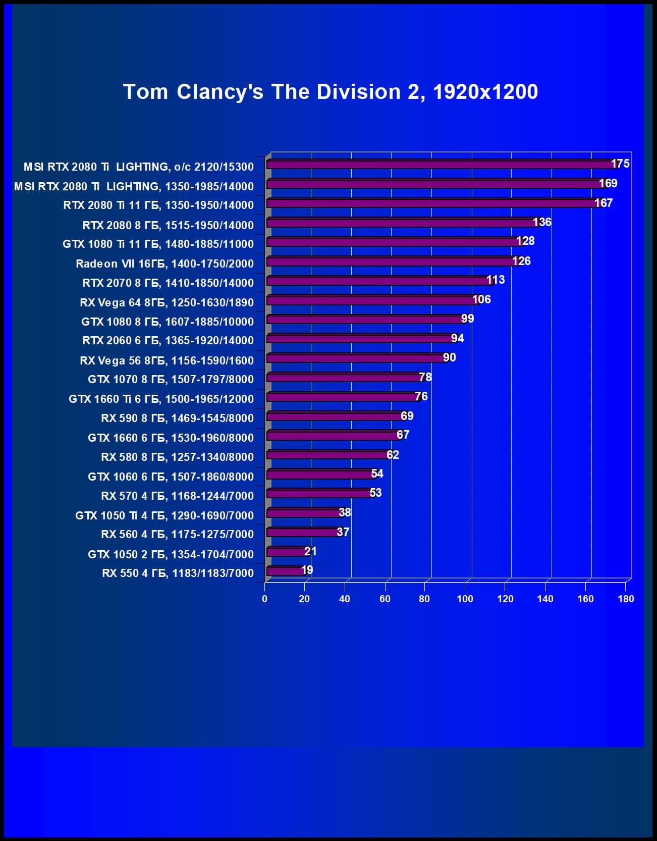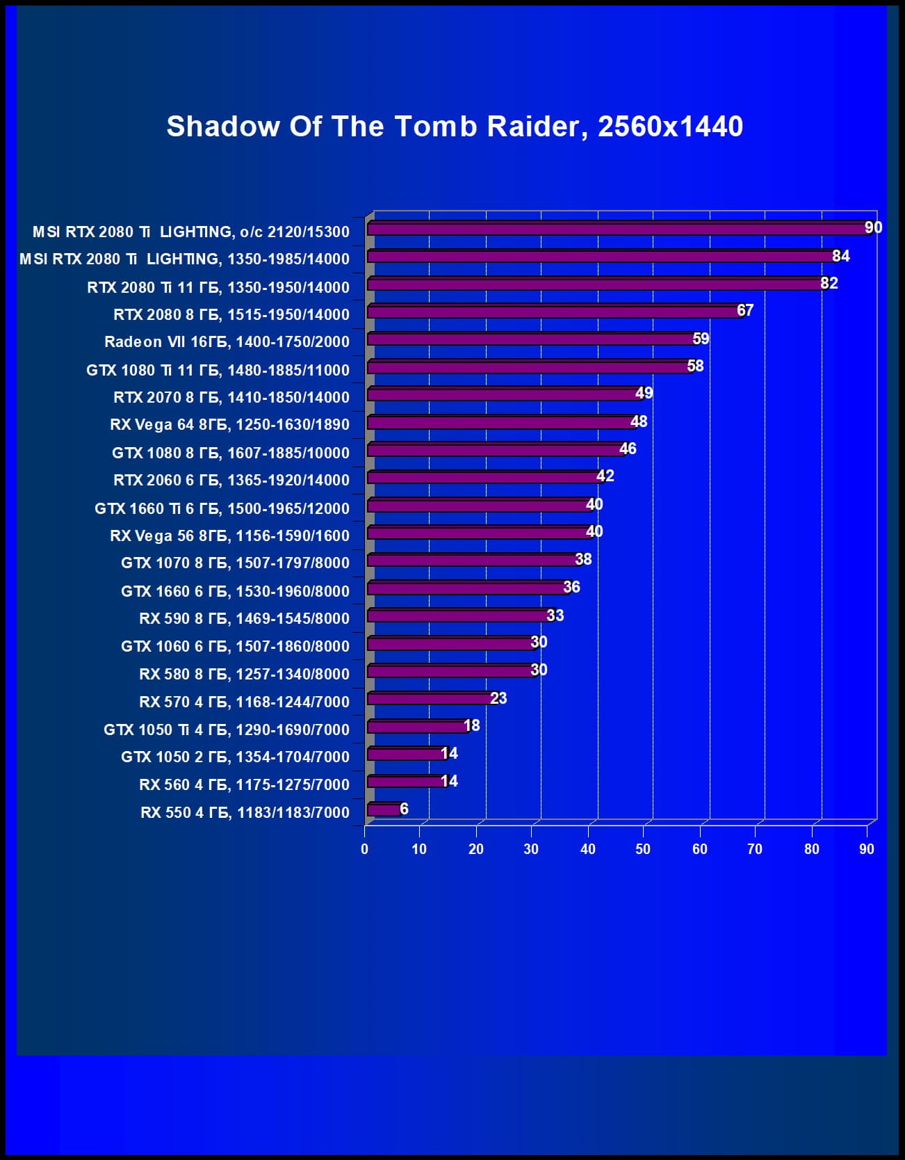 | 05 | Radeon VII 16 ГБ, 1400—1750/2000 | 1662 | 302 | 55 000 |