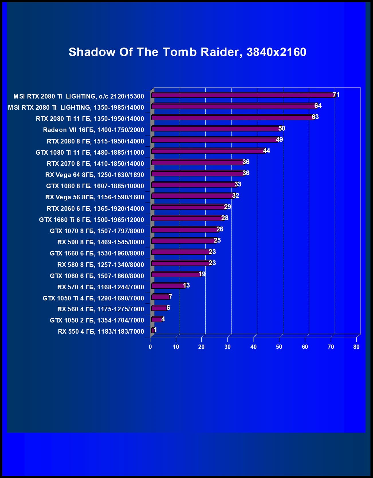 | 04 | Radeon VII 16 ГБ, 1400—1750/2000 | 144 | 790 | 55 000 |