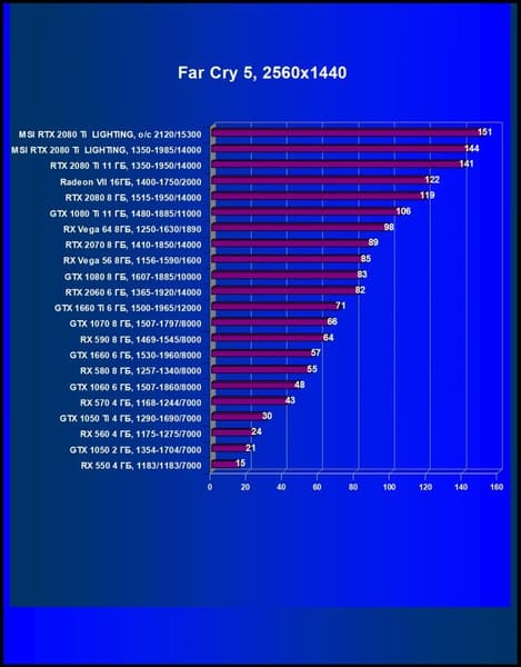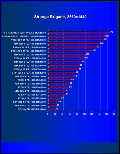 Рейтинг ускорителей iXBT.com демонстрирует нам функциональность видеокарт друг относительно друга и нормирован по самому слабому ускорителю — Radeon RX 550 (то есть сочетание скорости и функций RX 550 приняты за 100%). Рейтинги ведутся по 22 ежемесячно исследуемым нами акселераторам в рамках проекта Лучшая видеокарта месяца. Из общего списка выбирается группа карт для анализа, куда входят RTX 2080 Ti и его конкуренты. Учитывая, что ускоритель такого класса явно не предназначен для использования в разрешении 1920×1200 и ниже, мы приводим рейтинги только для разрешений 2560×1440 и 3840×2160.