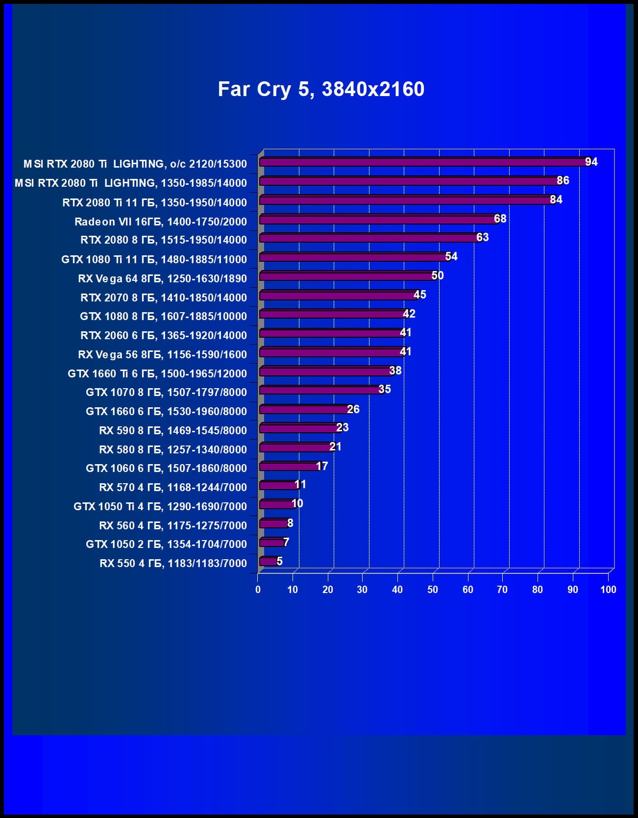 | 06 | MSI RTX 2080 Ti Lightning Z, 1350—1985/14000 | 101 | 1098 | 109 000 |