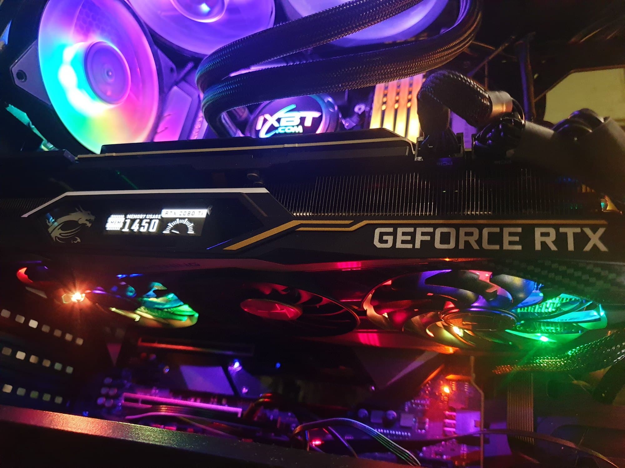 Понятно, что производительность у этой карты выше всех похвал, а конкурентов просто нет. GeForce RTX 2080 Ti и без разгона обеспечивает отменный комфорт в играх на максимальных настройках графики в разрешениях по 4К включительно. Плюс, у рассмотренного ускорителя MSI отличная система охлаждения, не допускающая серьезного нагрева GPU и остающаяся при этом тихой (а при малой нагрузке она вообще выключает вентиляторы). Любители моддинга будут в восторге от визуального оформления карты, от настраиваемой подсветки разных элементов и выделенного дисплейчика. Перед покупкой обязательно обратите внимание на размеры карты: они просто огромные, и если ширина в три слота сейчас перестала быть проблемой, то длина выше 300 мм может стать причиной поиска нового корпуса. Что же касается экстремально высокой (даже по сравнению с аналогами на том же GeForce RTX 2080 Ti) цены, то здесь каждый решает сам.