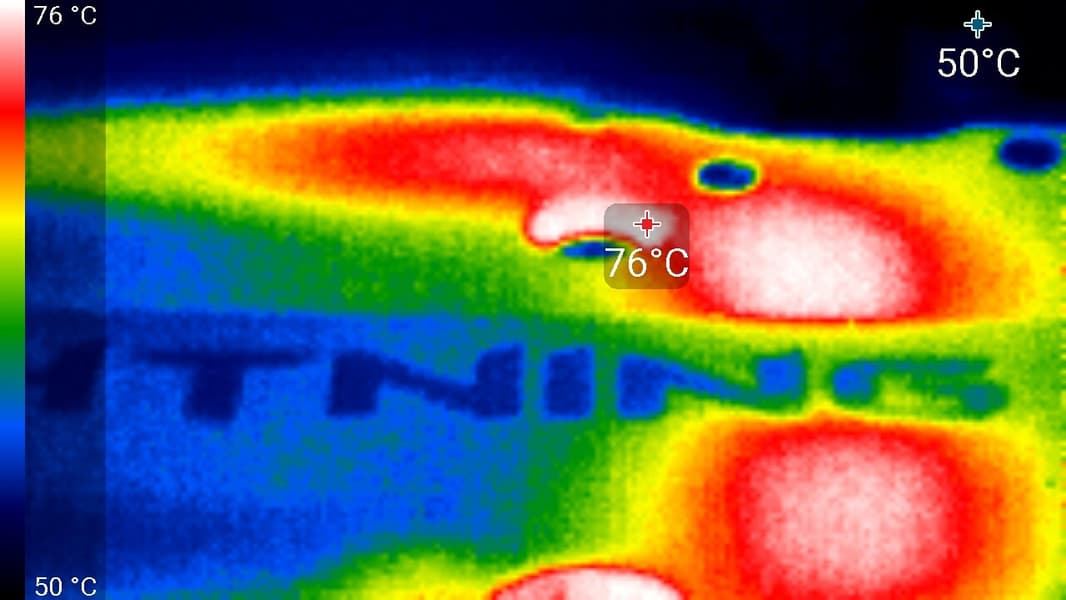 Максимальный нагрев — в области VRM.