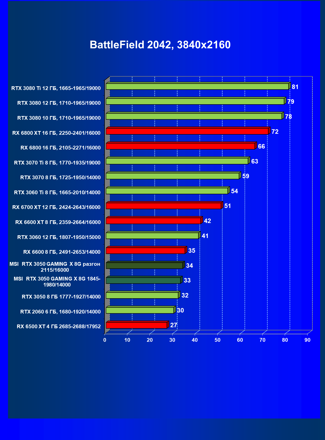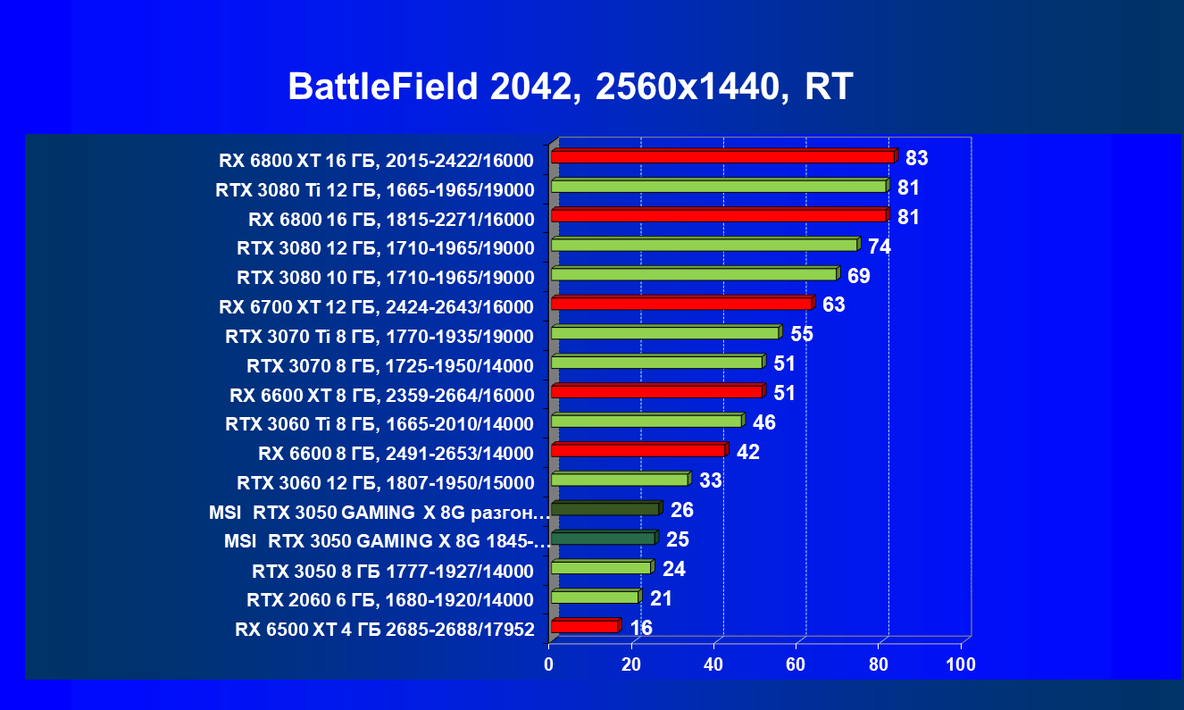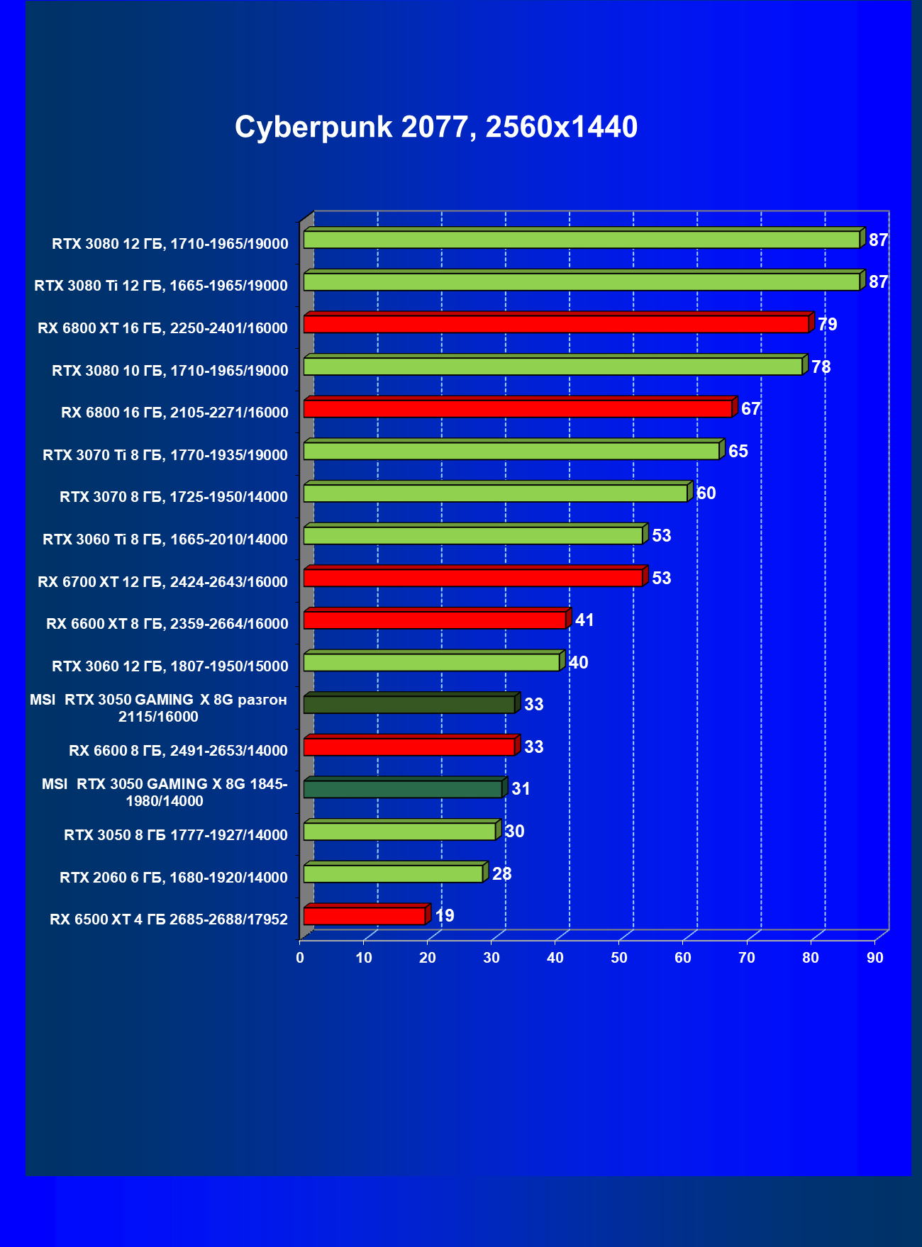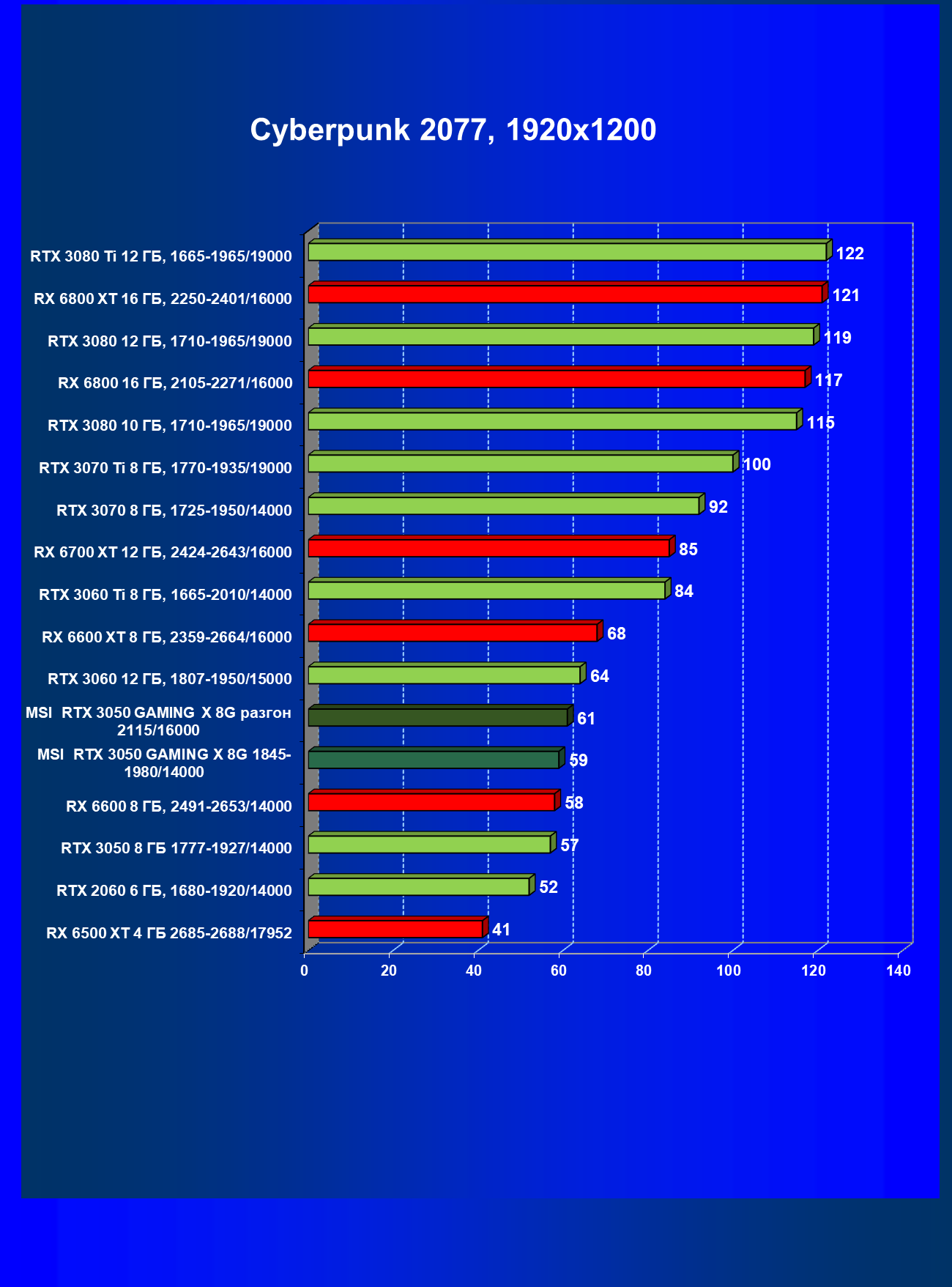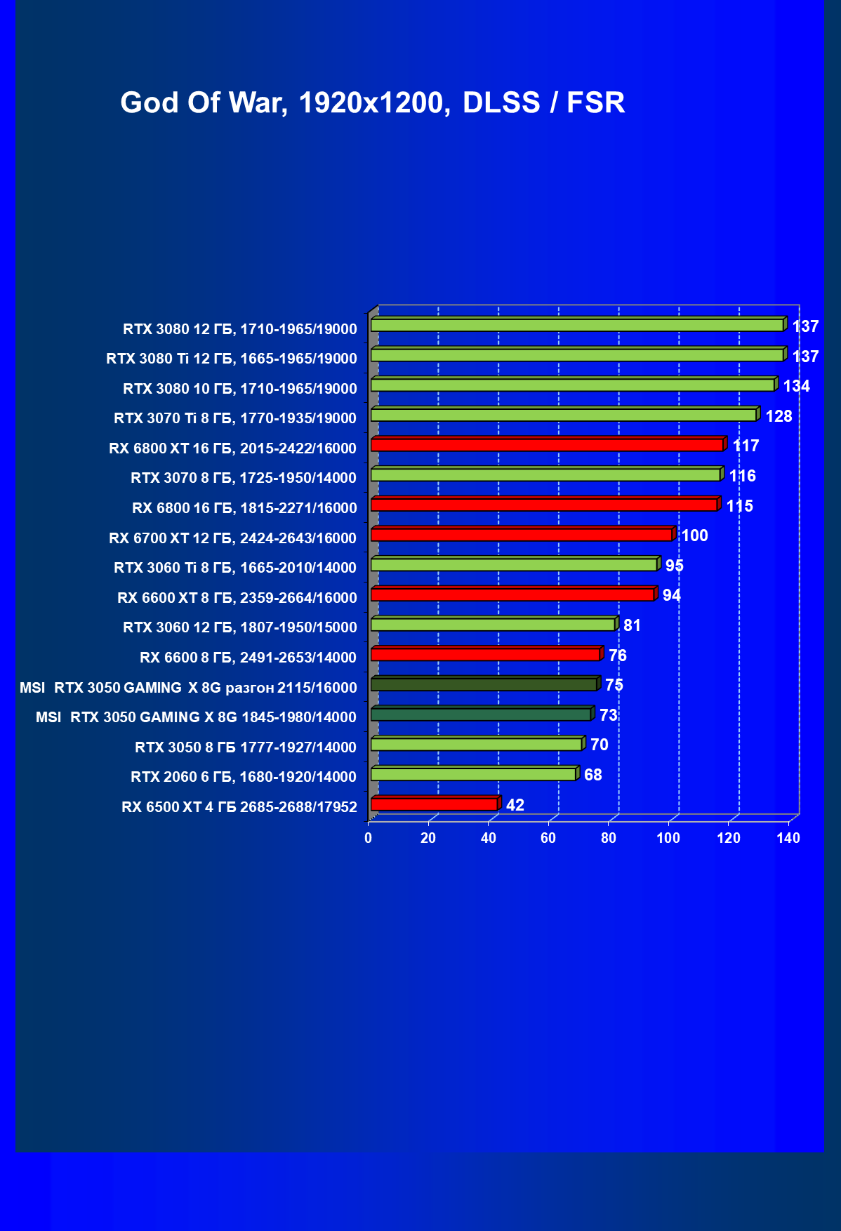 | 03 | MSI RTX 3050 Gaming X 8G, 1845—1980/14000 | 79 | 270 | 34 000 |