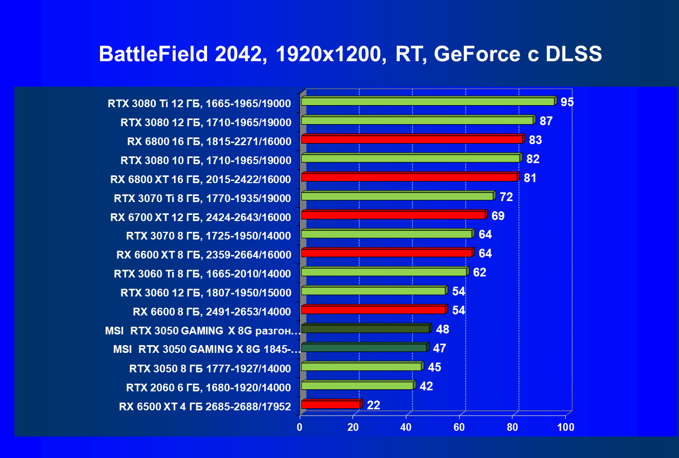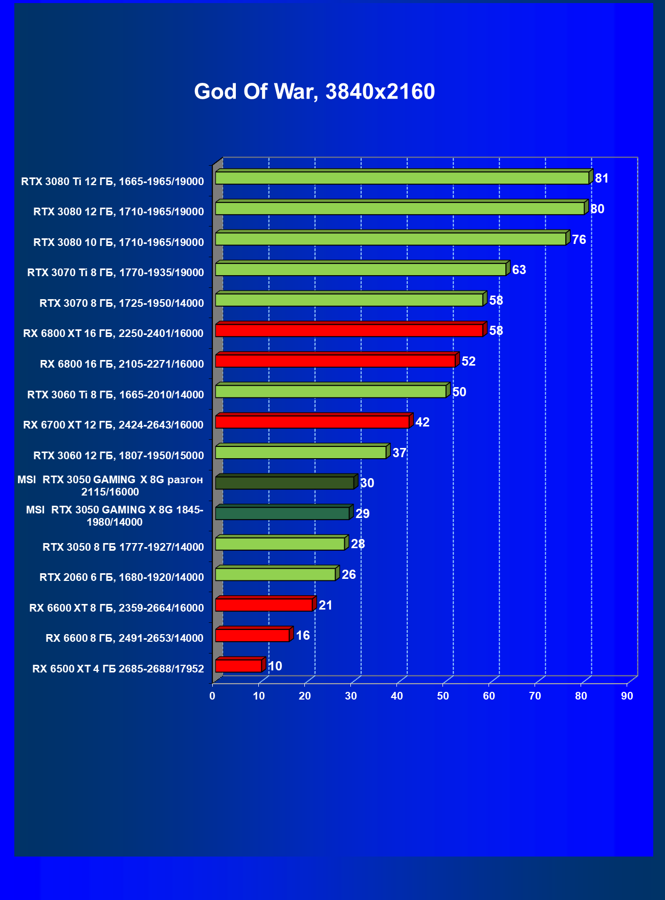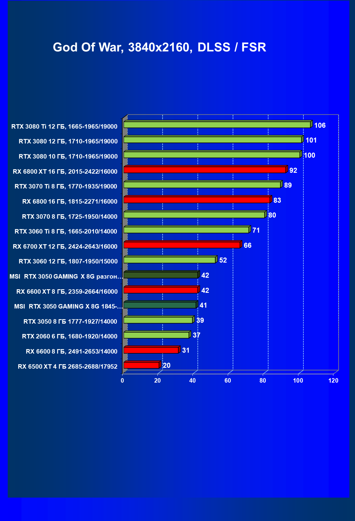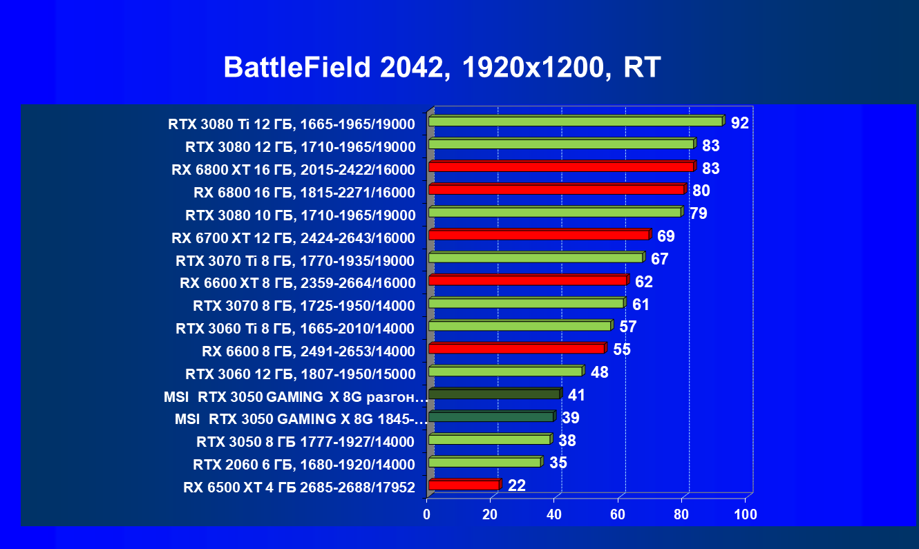 | 03 | MSI RTX 3050 Gaming X 8G, 1845—1980/14000 | 79 | 270 | 34 000 |