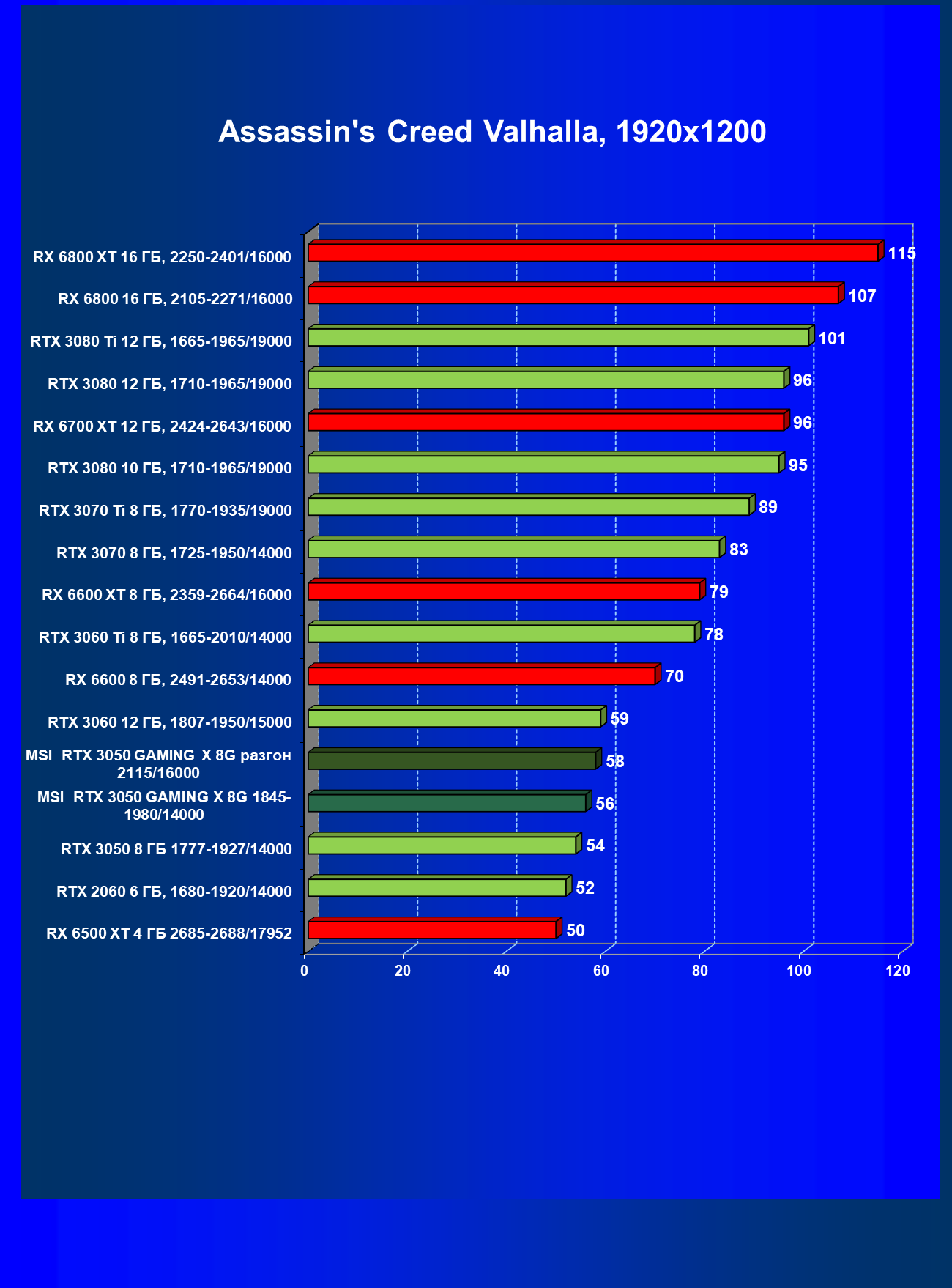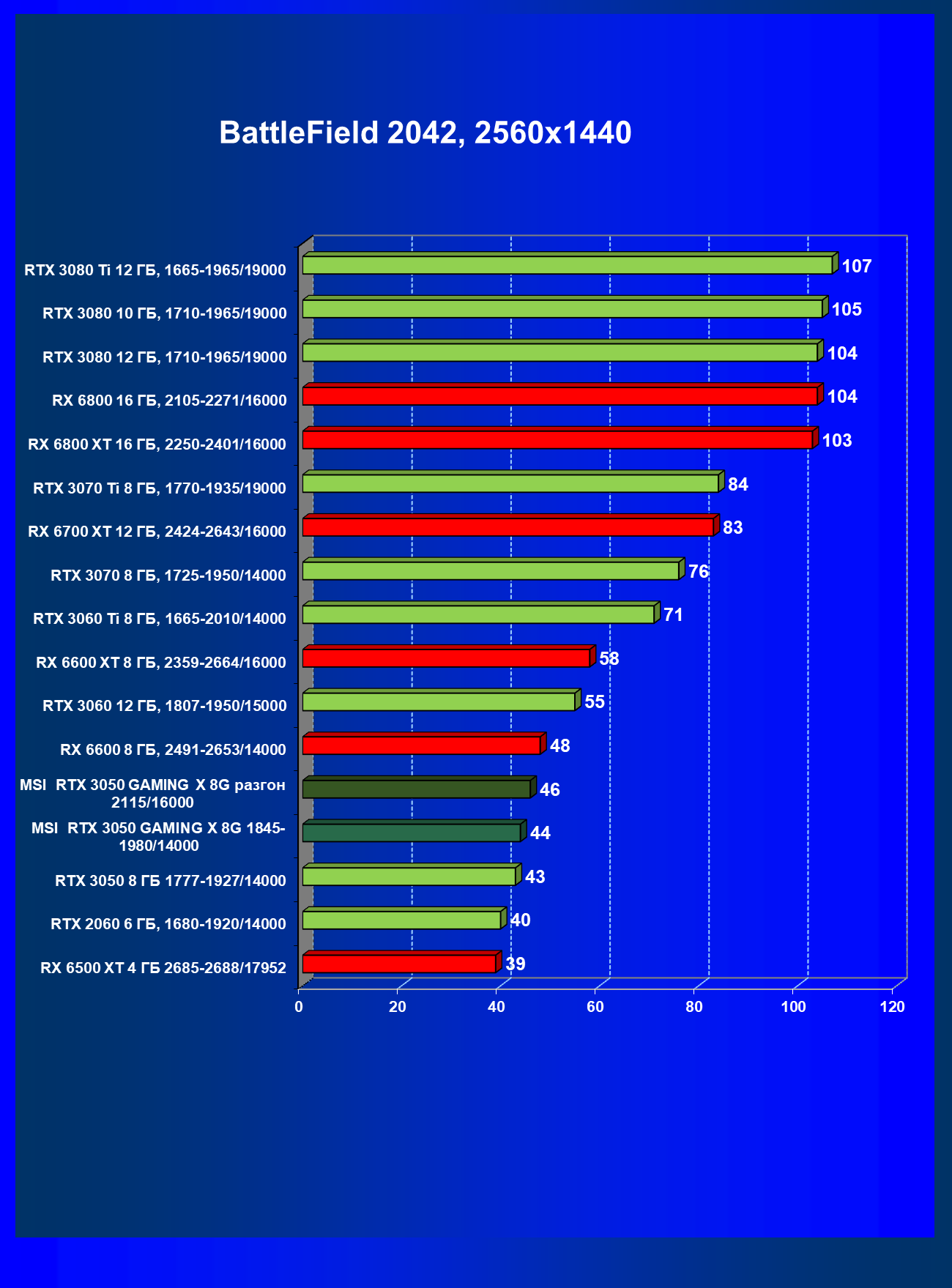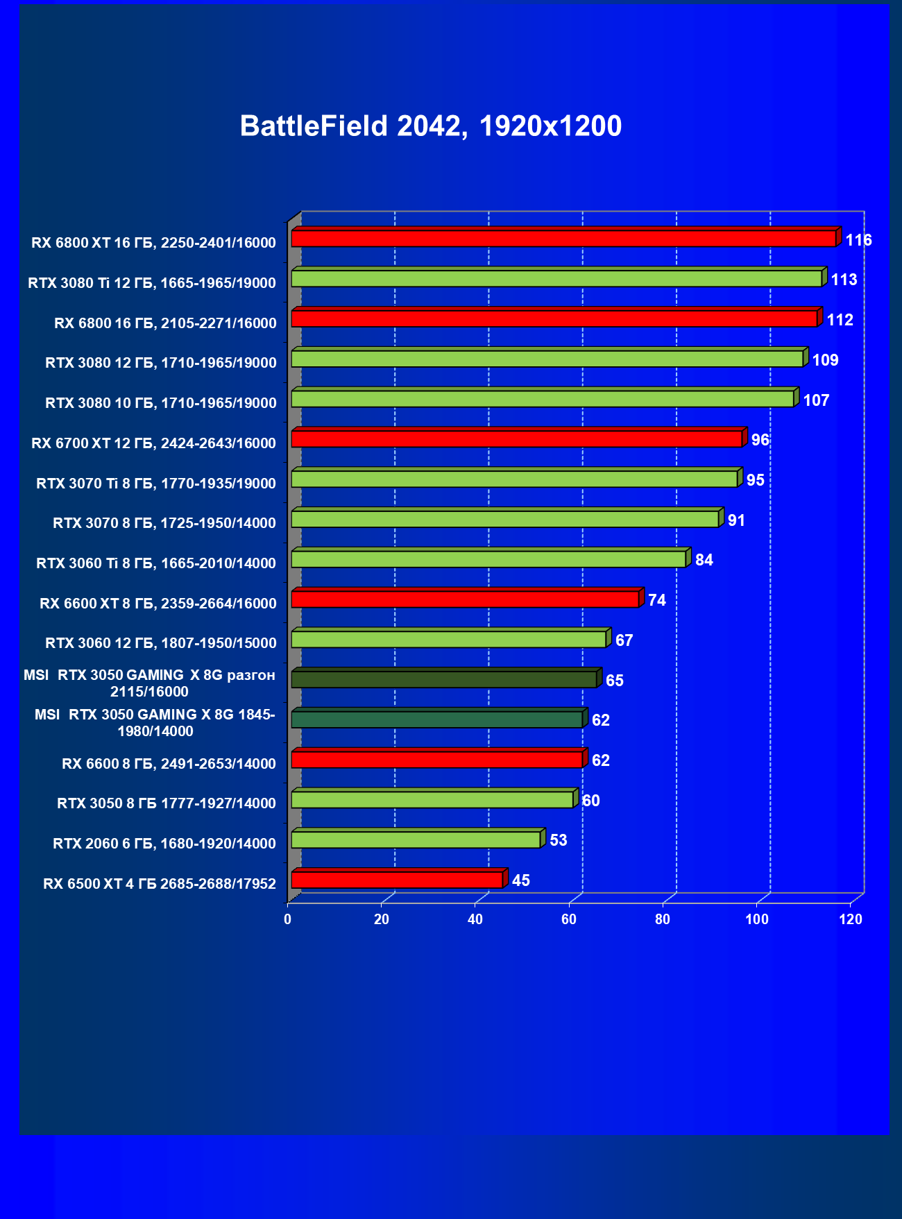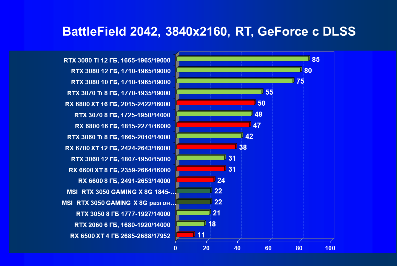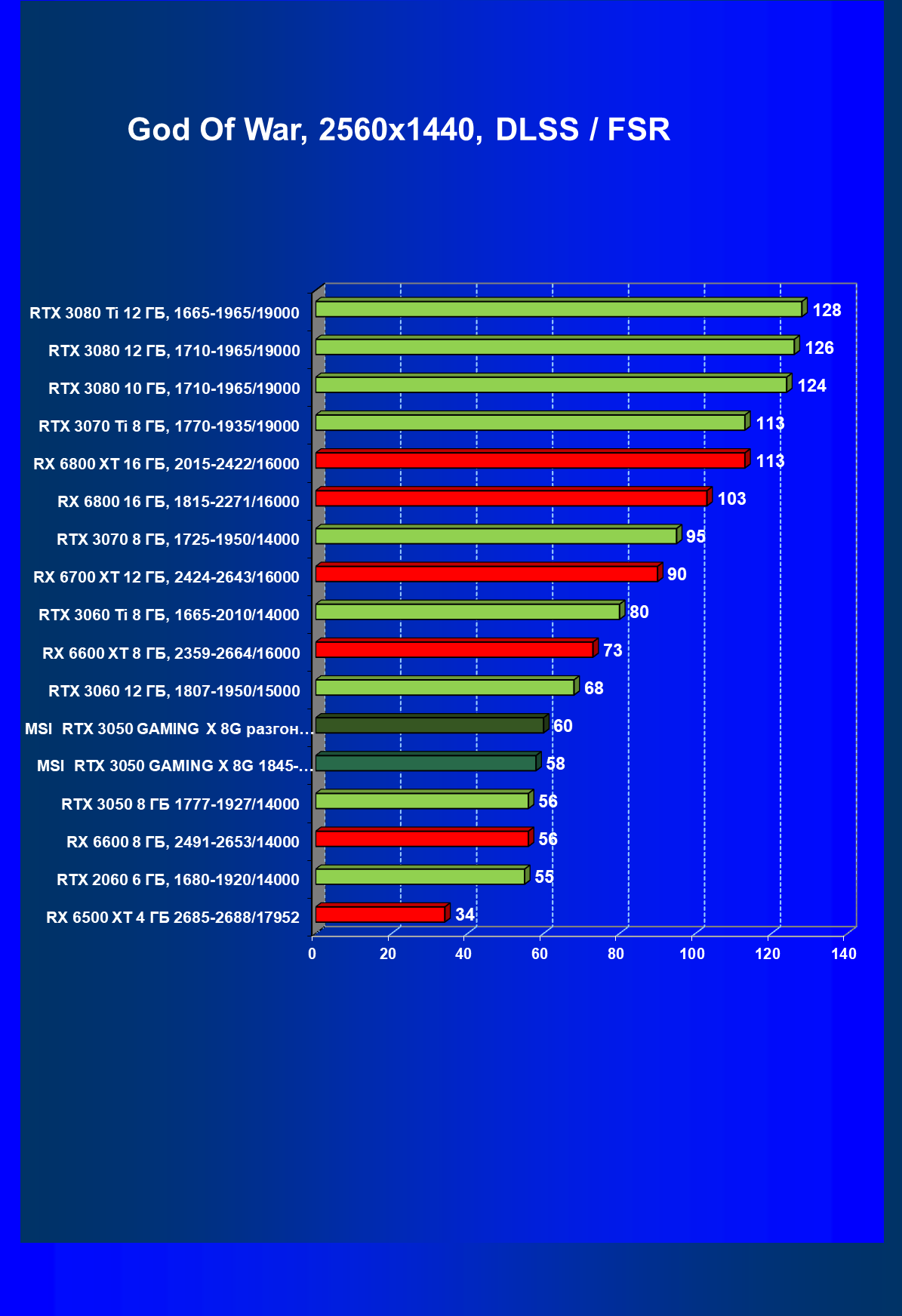 | 03 | MSI RTX 3050 Gaming X 8G, 1845—1980/14000 | 79 | 270 | 34 000 |