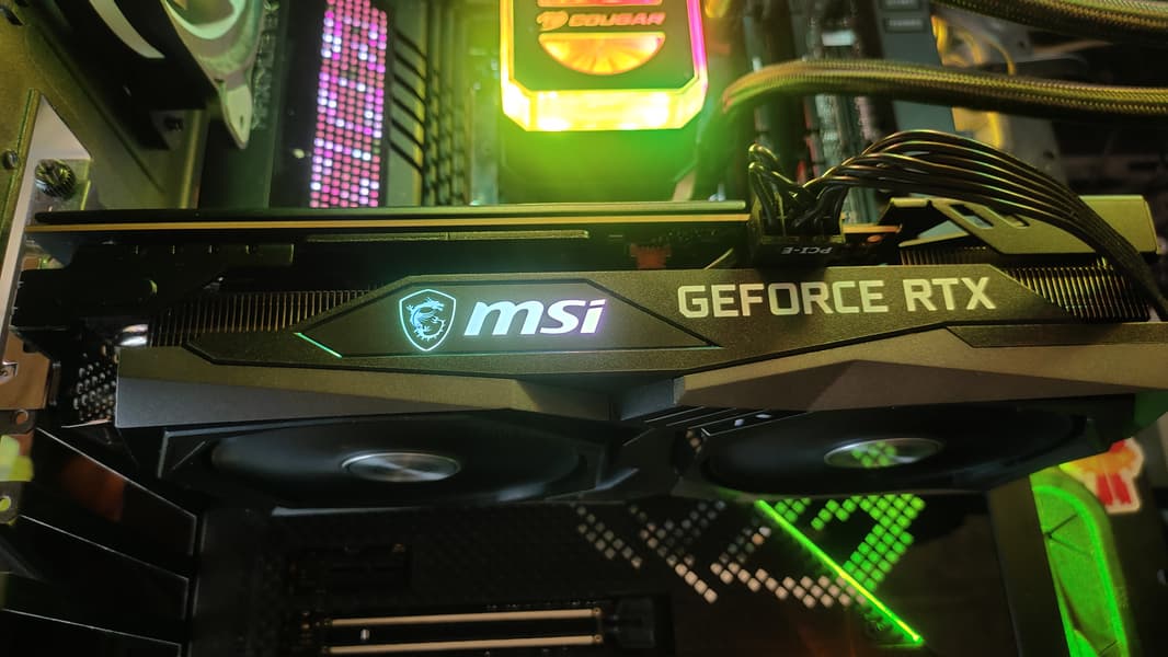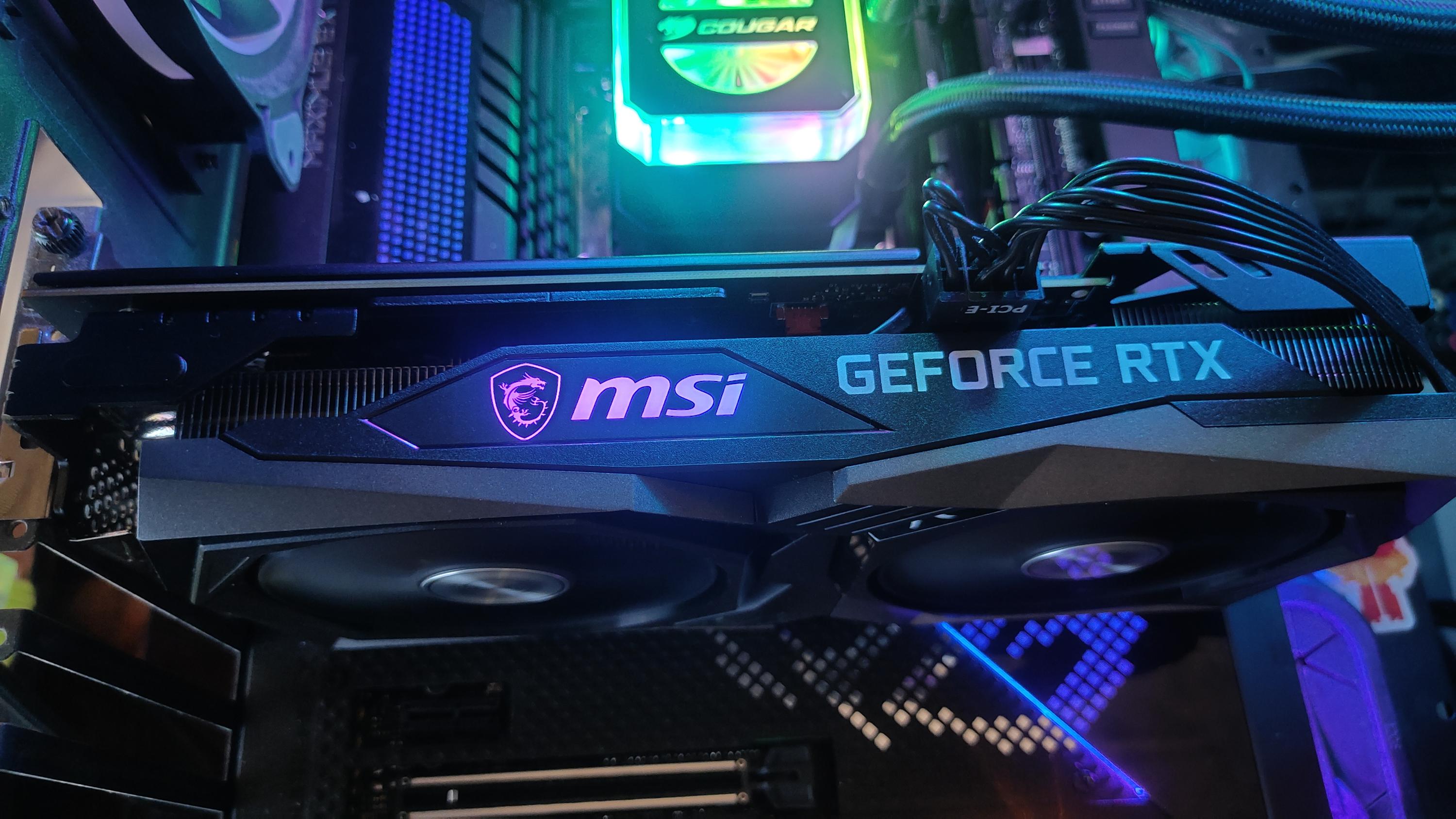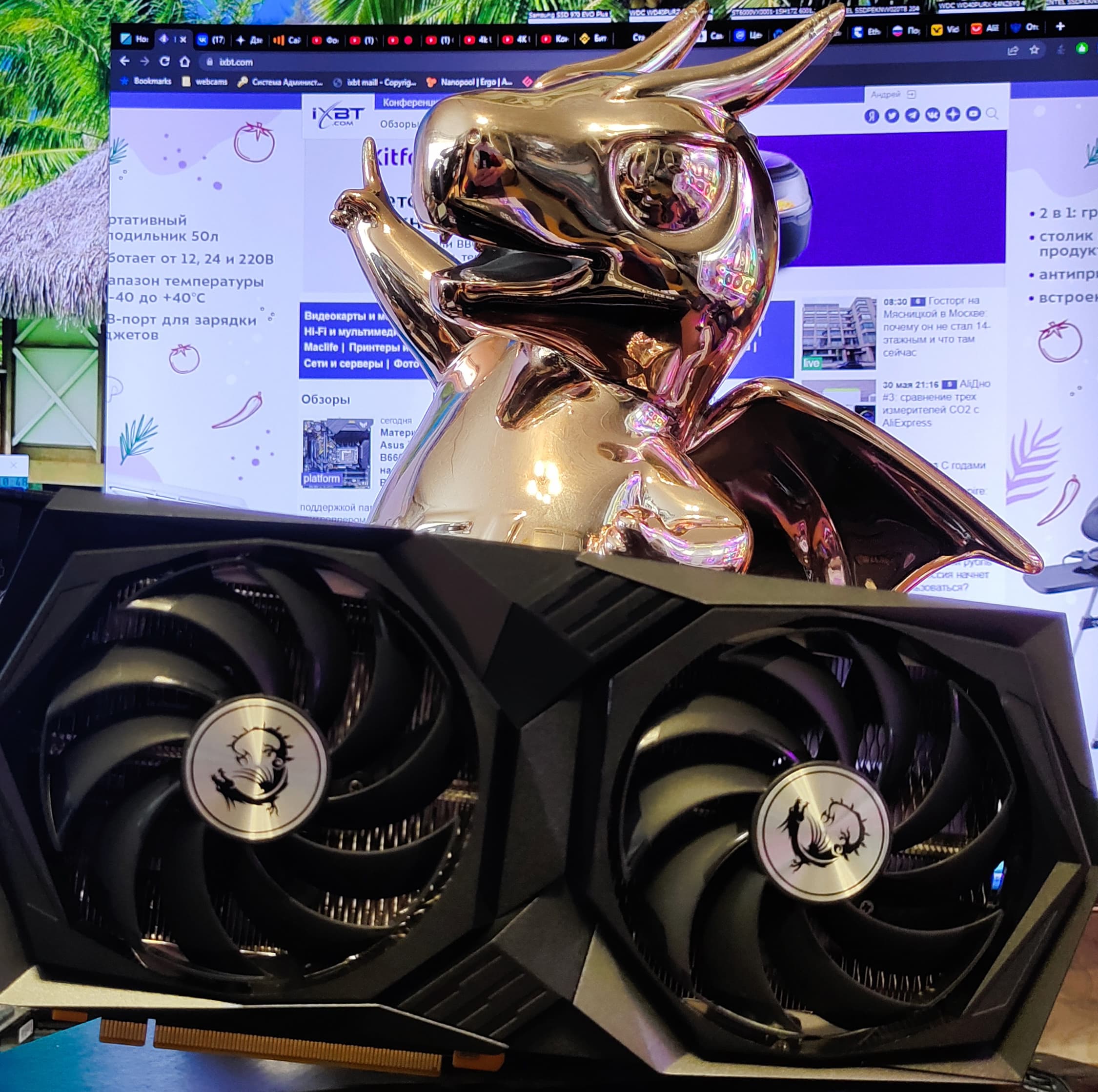 Что касается самой карты, то ее отличает эффективная и очень тихая система охлаждения, однако карта с ней занимает более 2 слотов в системном блоке. Подсветка минимальная: лишь на верхнем торце светится логотип (подсветка отключается через MSI Center).